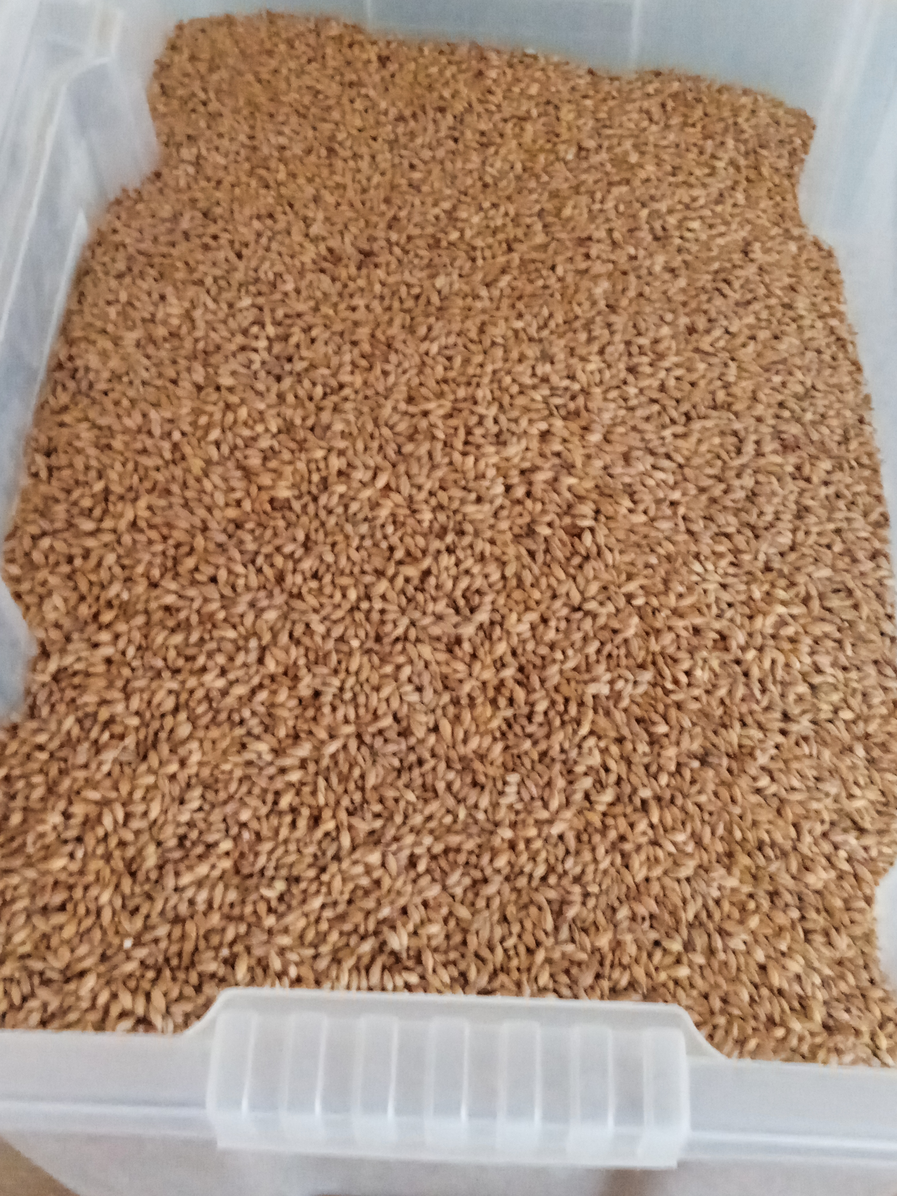 Handschrotmühle, der 1 Sud wurde gestern schon geschrotet, der zweite wurde nebenher geschrotet