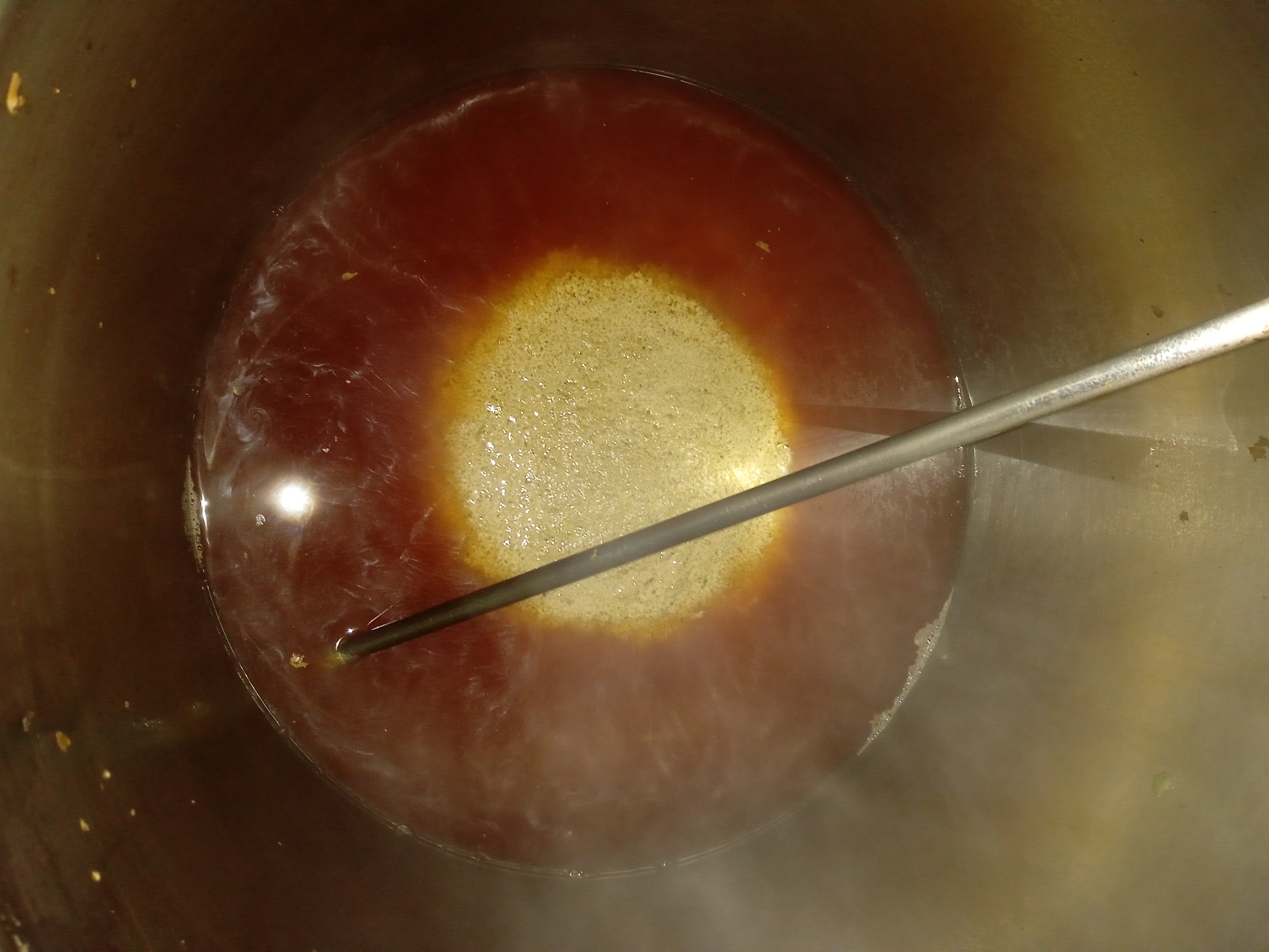 Sobald dieser am Läutern war wurde der zweite Sud, ein Hefeweizen eingemaischt.
