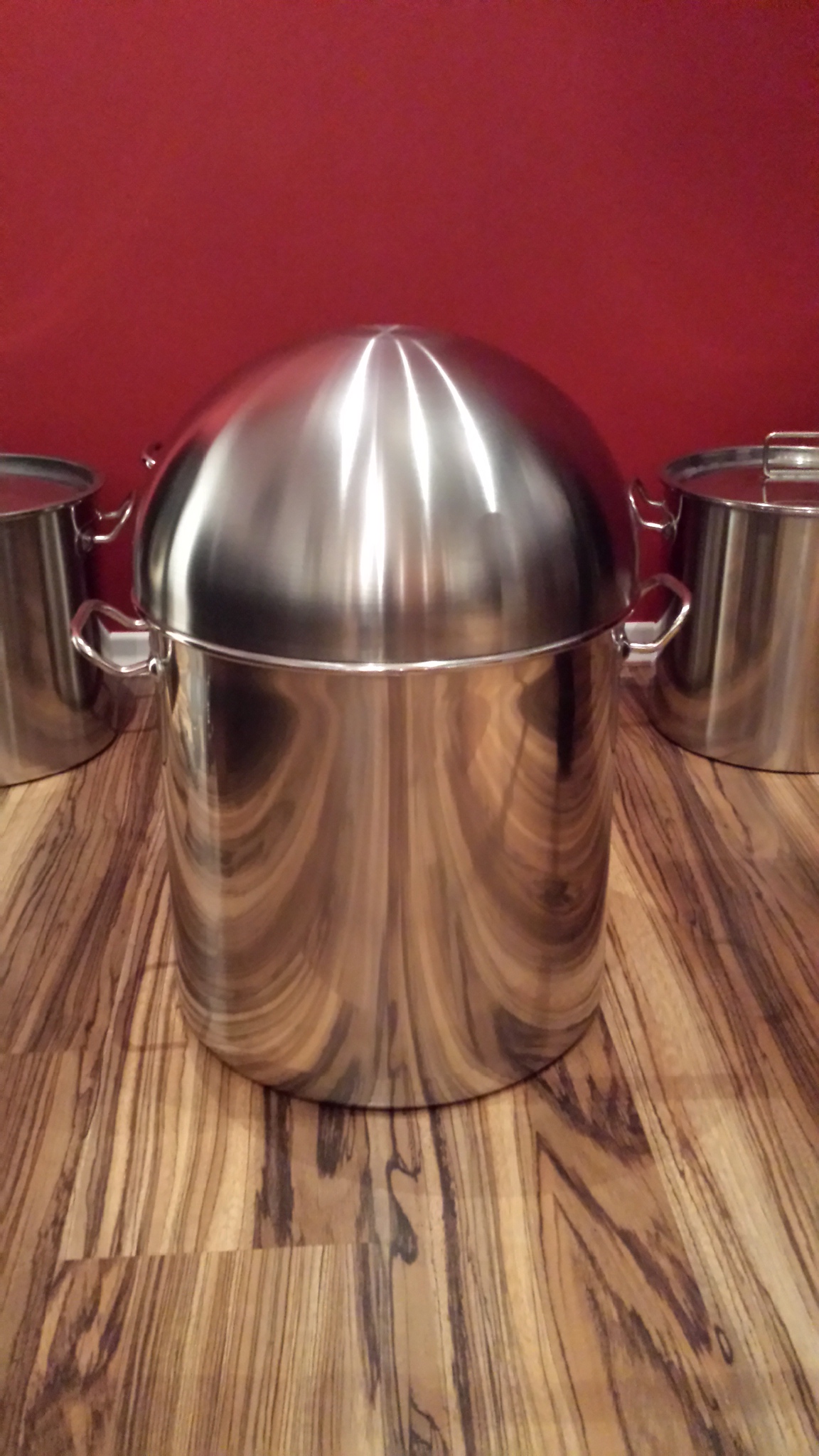 bei Ikea gibt es eine Edelstahlschüssel Blanda Blank mit 36cm Durchmesser für 11,99€ die man für den Bau einen Brüdenhaube nehmen könnte. Das Material ist Edelstahl, allerdings magnetsich und möglicherweise schlecht schweißbar. Auf den Contacto 36l Topf passt sie ganz gut: