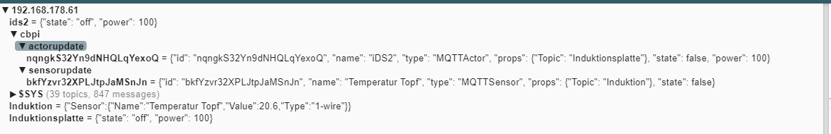 Der Hinweis mit dem MQTT Explorer war super! Das hat sehr geholfen, um zu sehen ob was geht. :thumbup