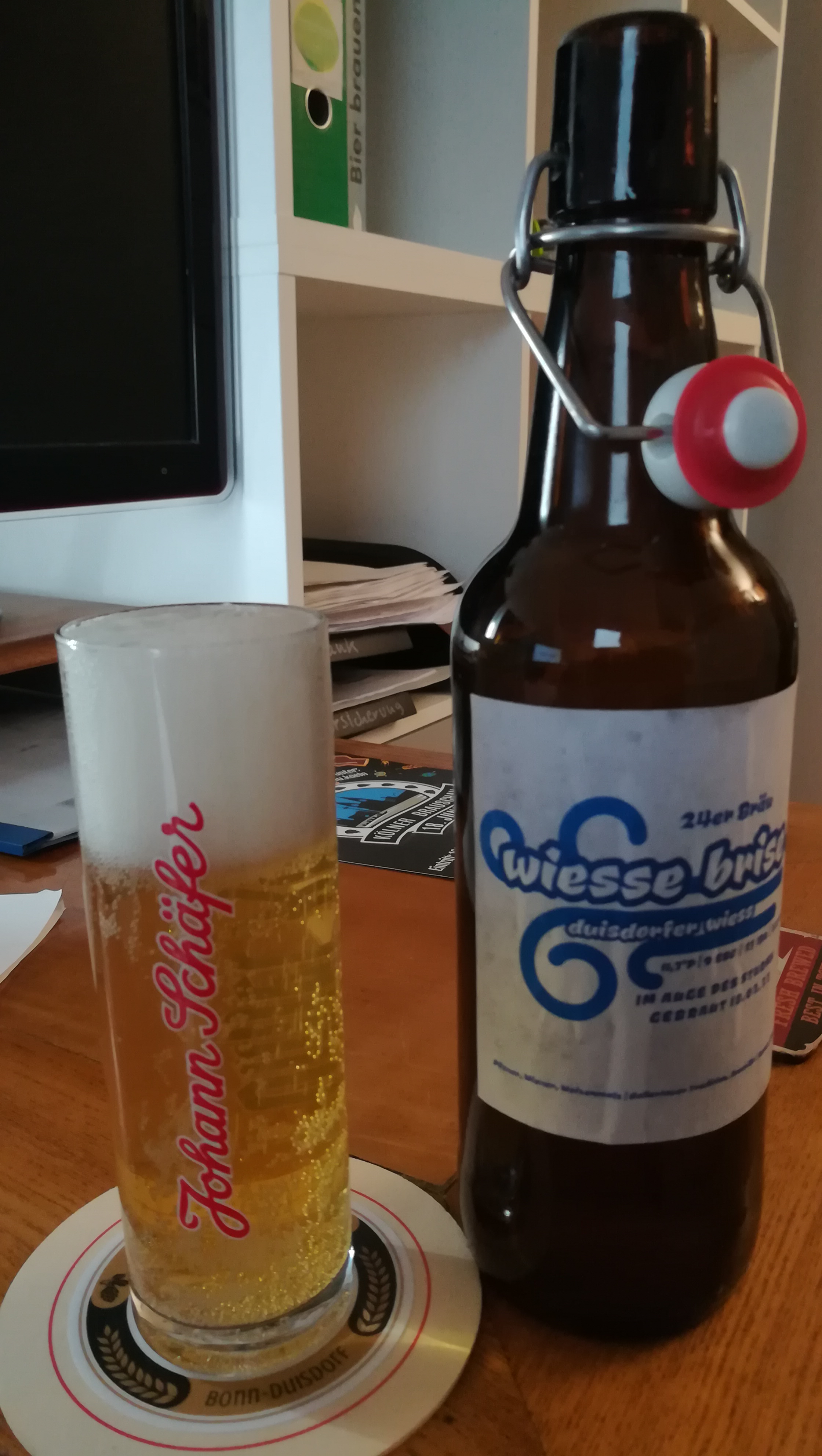 Und wieder ein Update: Nach 10 Tagen Flaschengärung und 8 Tagen bei 4°C im Kühlschrank heute die erste Flasche mal aufgemacht.