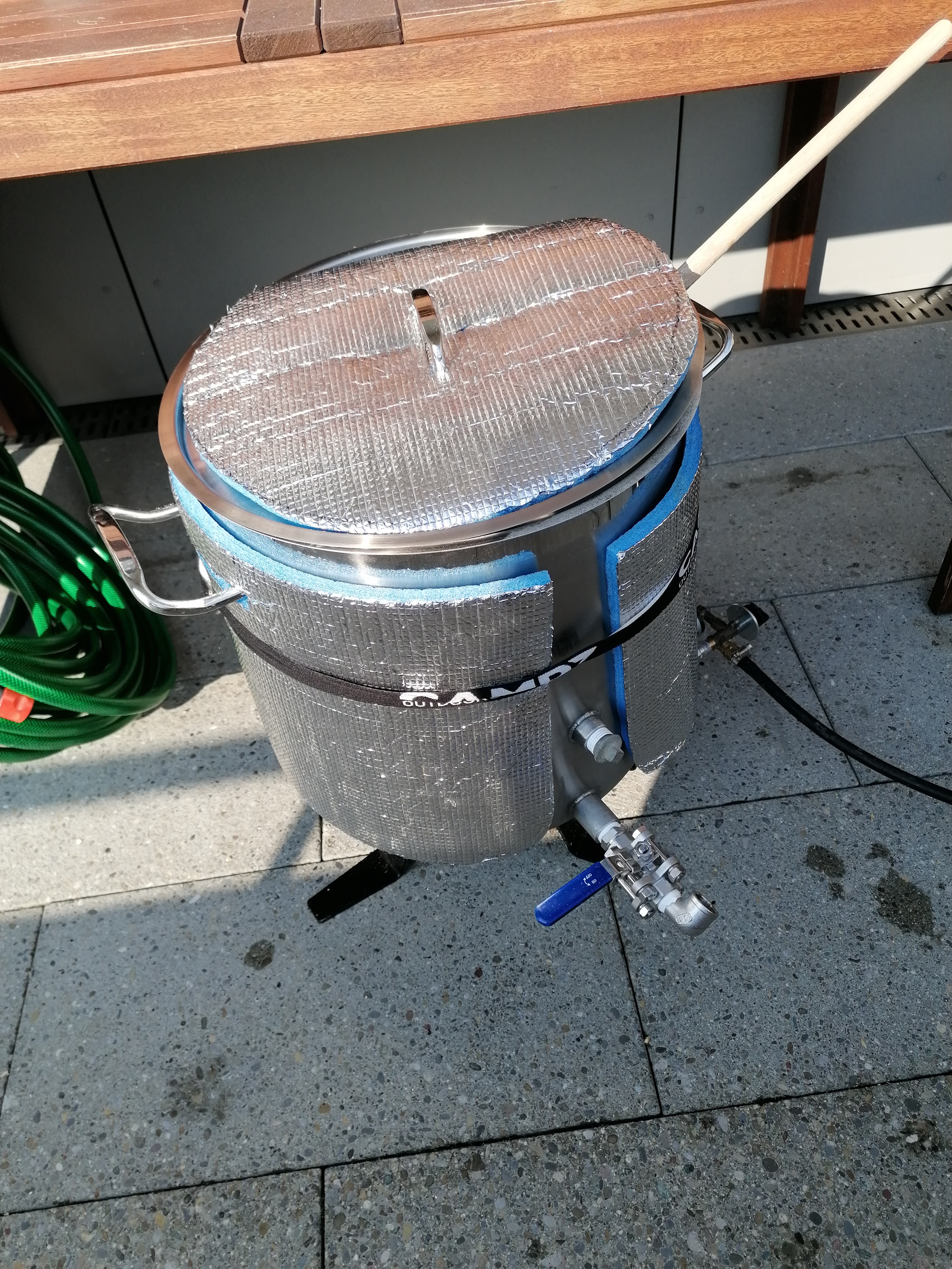 Ich musste meine Ausrüstung meinen Bedürfnissen entsprechend (Kinder, Schule, Job) anpassen. Gestern habe ich den letzten Sud mit der alten Ausrüstung (Gasbrenner, Topf BrewPaganda, Läutereimer, etc.) brauen dürfen. Wahrscheinlich will mein Unterbewusstsein die Erinnerungen mit diesem Post festhalten - nicht dass mir so was Gutes noch in Vergessenheit gerät! :Smile