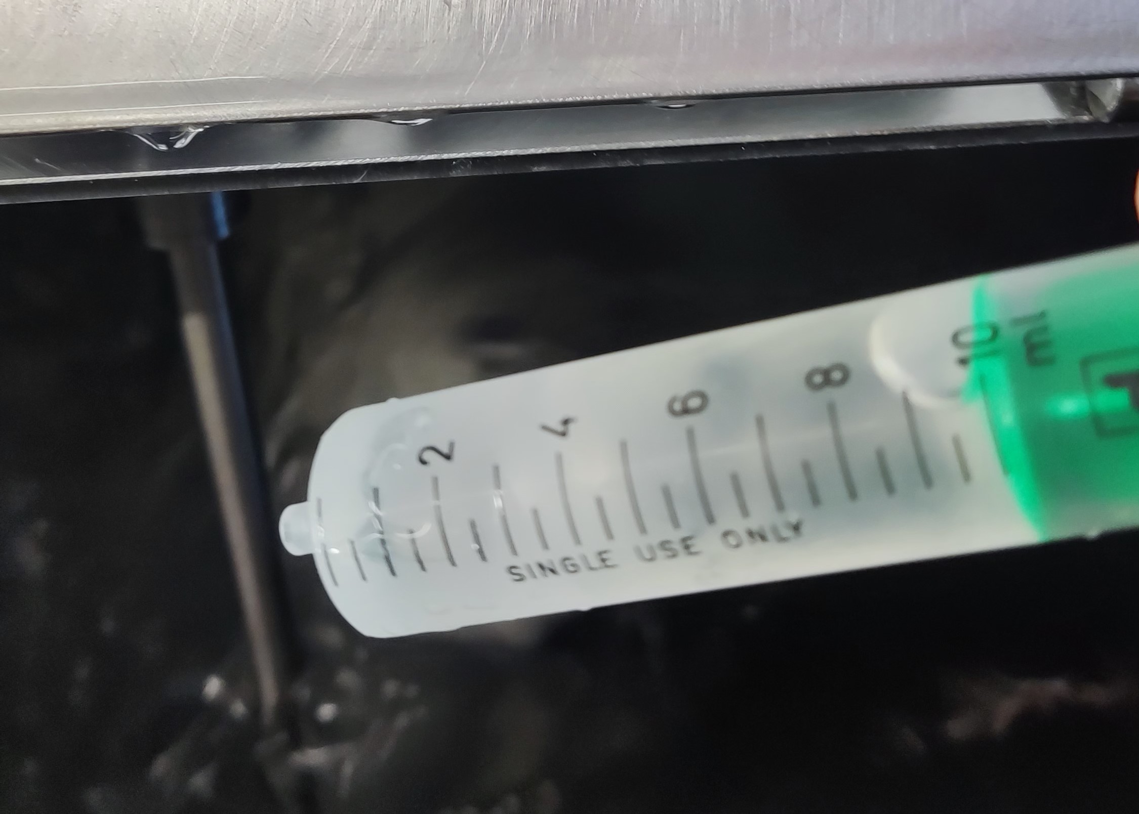 CBPI fährt dann ganz von alleine die benötigten Rasten und ich hatte Zeit den Läuterbottich mit der Läuterspirale vorzubereiten. 10 Min nach Erreichen der 63°C Grad Rast habe ich dann den PH Wert gemessen. Hmm ja, das hatte ich mir einfacher gedacht. Scheinbar verhindert die Meische mit den dicken Anteilen ein zuverlässiges Messen. Daher flugs ein Sieb aus der Küche, die gesiebte Meische im Wasserbad abgekühlt und dann gemessen. Ganz schön aufwändig. Bei der ersten Messung lag der PH Wert relativ hoch bei 6,1. Zum Glück hatte ich anfangs ca. 2ml von der der berechneten Milchsäure für den Hauptguss zurückbehalten. Mit 3,5ml Milchsäure habe ich den PH Wert in Richtung 5,5 korrigiert.