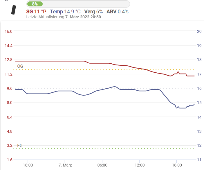 Mittlerweile zeigt die iPSindel im Brewfather die laufende Gärung an, dass ist in der App auch ganz nett dargestellt.