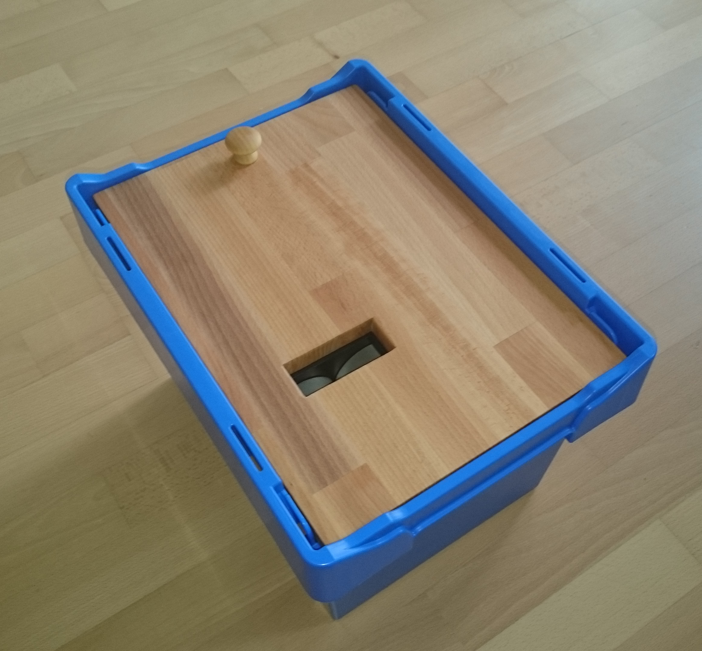 Meine "Kompakt" ist auf eine runde Holzplatte montiert, die genau auf den Eimer passt.