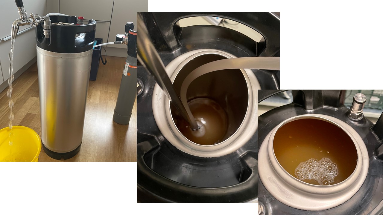 Das ist immer noch kein Vergleich mit einer richtigen Zapfanlage, das Bier fließt langsamer. Aber wenn man bedenkt dass da nur ein Anschluss und Kompensationshahn hängt, funktioniert das jetzt richtig gut. Jedenfalls ist Schaum kein Problem mehr.