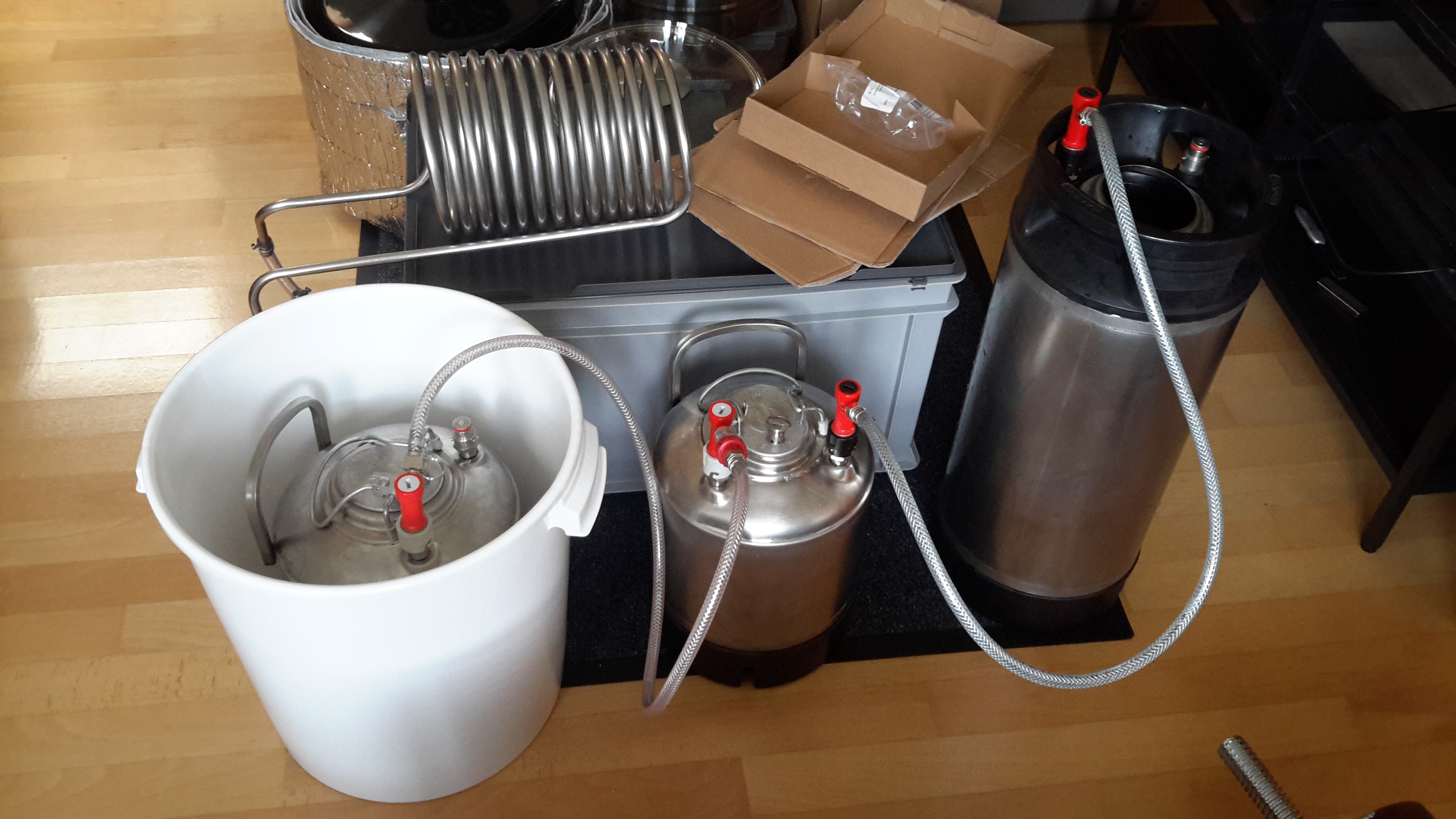 Sobald das Mittlere Keg leergedrückt ist, kommt da ein Manometer mit Ventil drauf.