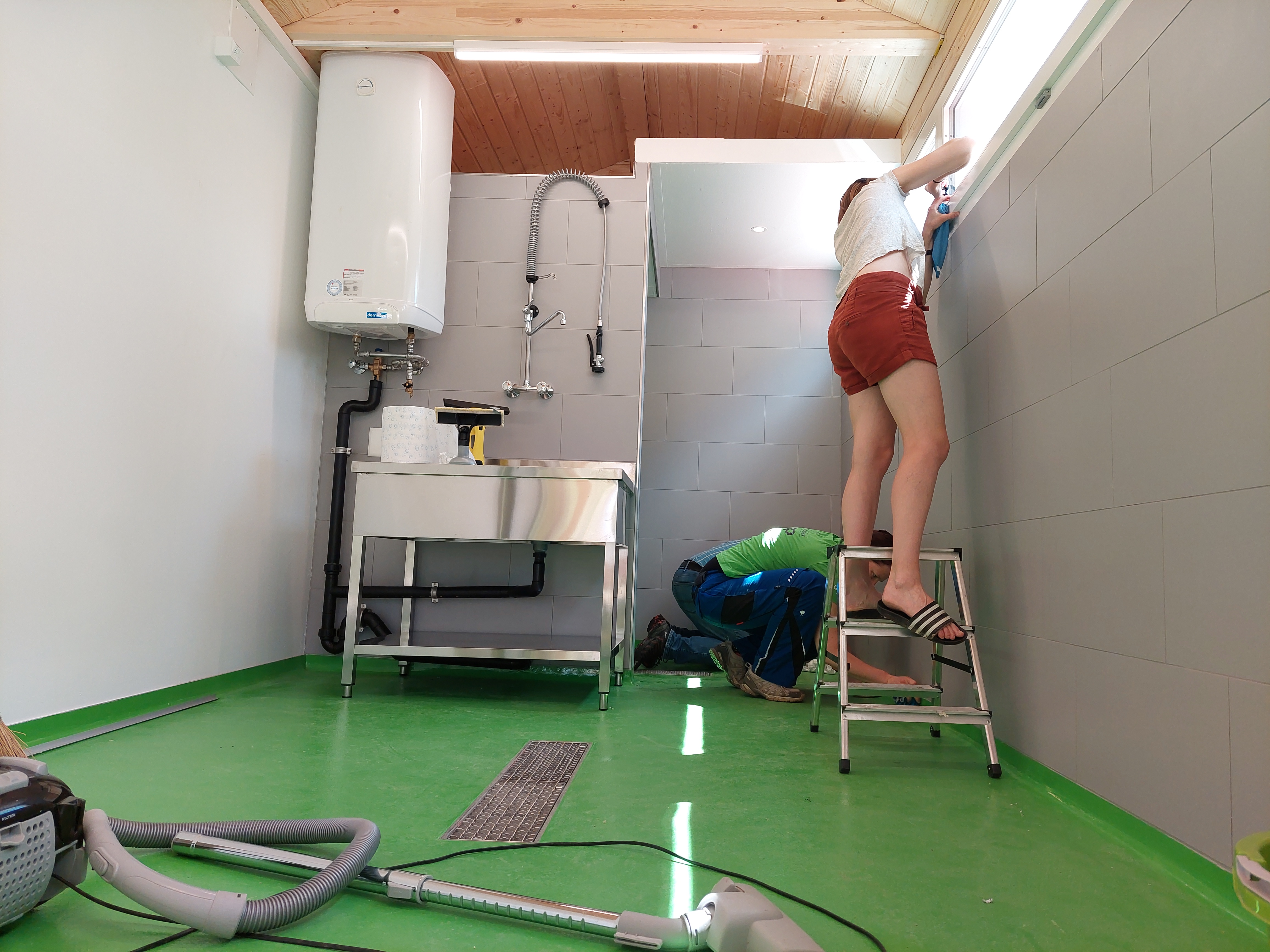 Nach dem wir in den letzten Wochen und Tagen noch fleissig gefliest und ausgefugt hatten stand am Mittwoch 25.05.22 die Bauendreinigung auf dem Plan. Am Nachmittag haben wir zu 5. die Brauerei komplett gereinigt, jeden cm trocken und nass. So dass am Einzug am Freitag nichts mehr im Wege stand.