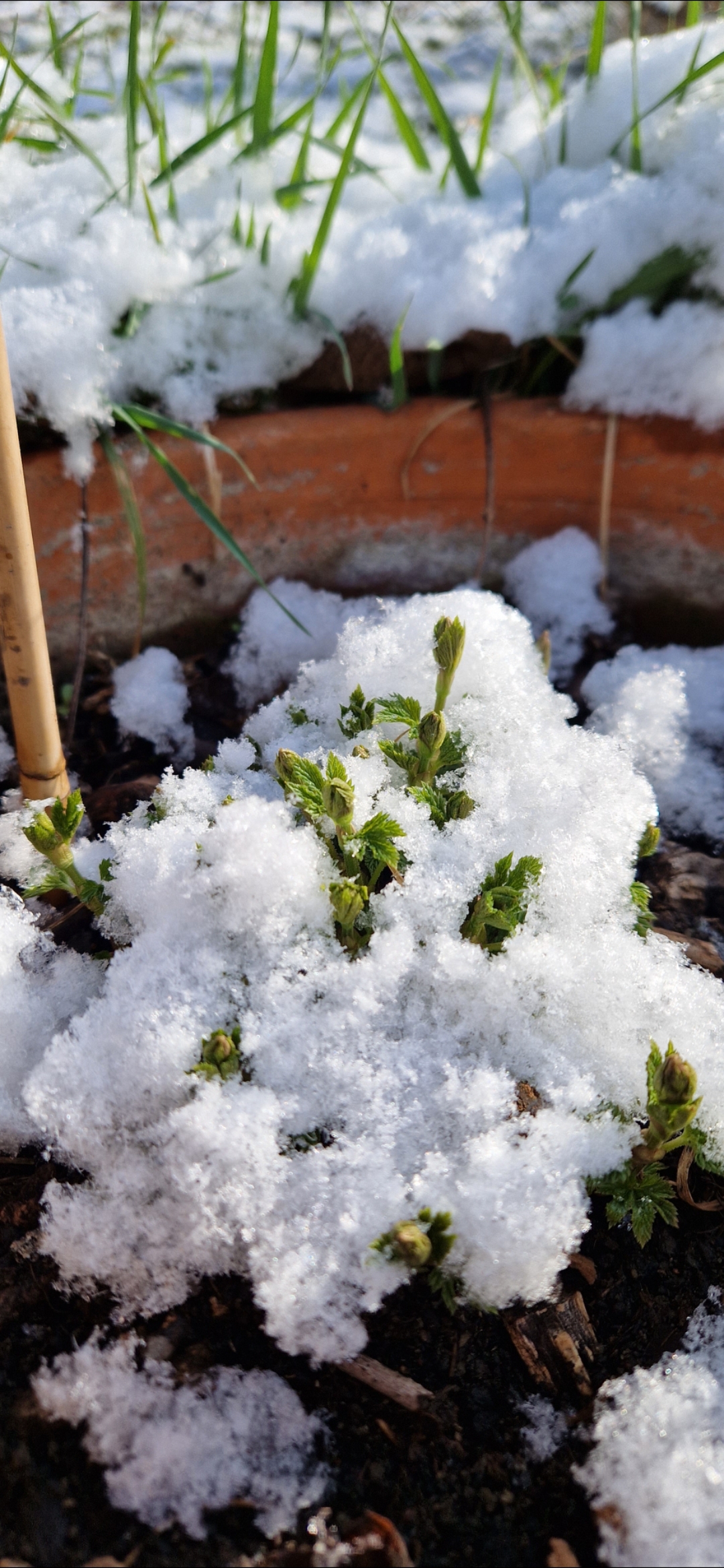 Nach dem kurzen Frühlingshoch (+20°C) bei uns in Niederösterreich wurde meine Cascade durch einen kurzen Wintereinbruch und -4°C gebremst. :thumbdown