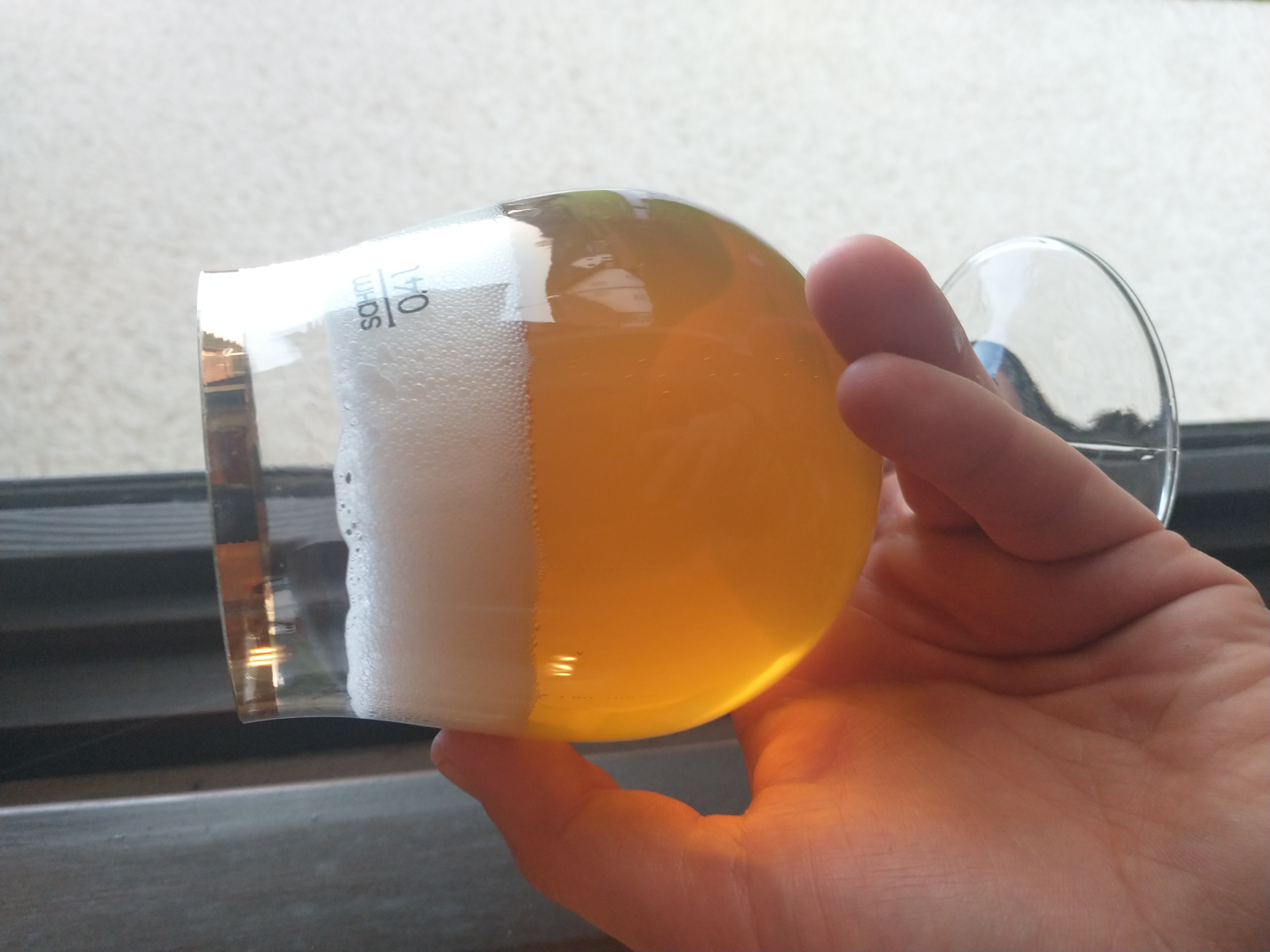 Ein Bernstein-Saphir-Weizen, gebraut am 14. Mai 2021.