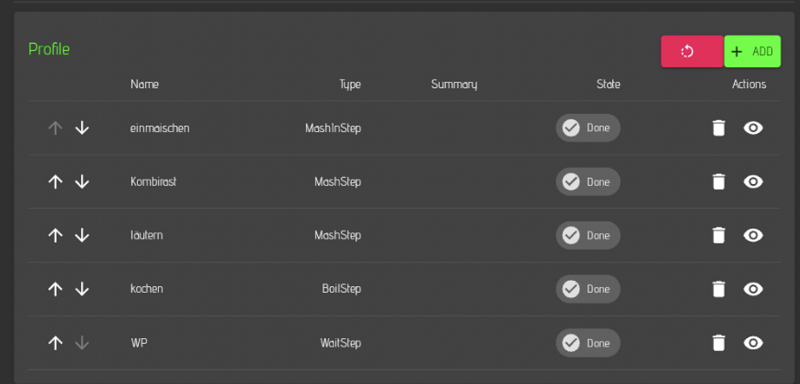 ich wollte bei bestehenden Maischeplänen einen Notifcation-Punkt einfügen. Das hinzufügen geht. Aber beim hochschieben auf die gewünschte Position verhält sich CBPI sehr irrational. Nur eine Positon hoch schieben geht. Will man dann von Position 3-Letzt eins nach unten schieben, wird Position 2 überschrieben. Hab auch andere Step-Arten probiert oder auch eine undefinierte. Das Ergebnis ist stets identisch.