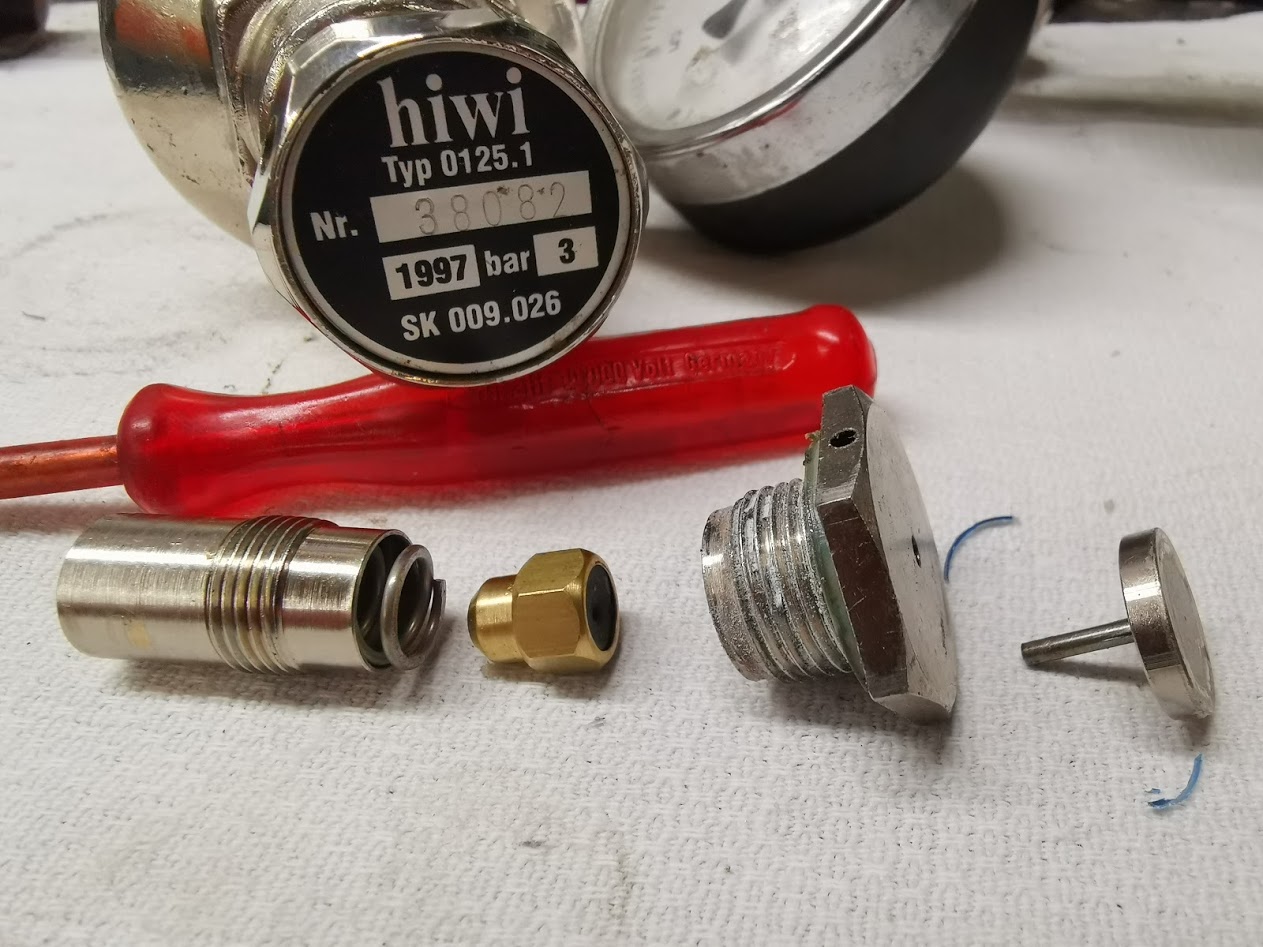 Diese Messingschraube existiert an meinem Druckminderer (HIWI SK 265-011 Typ 0125.1) nicht ...