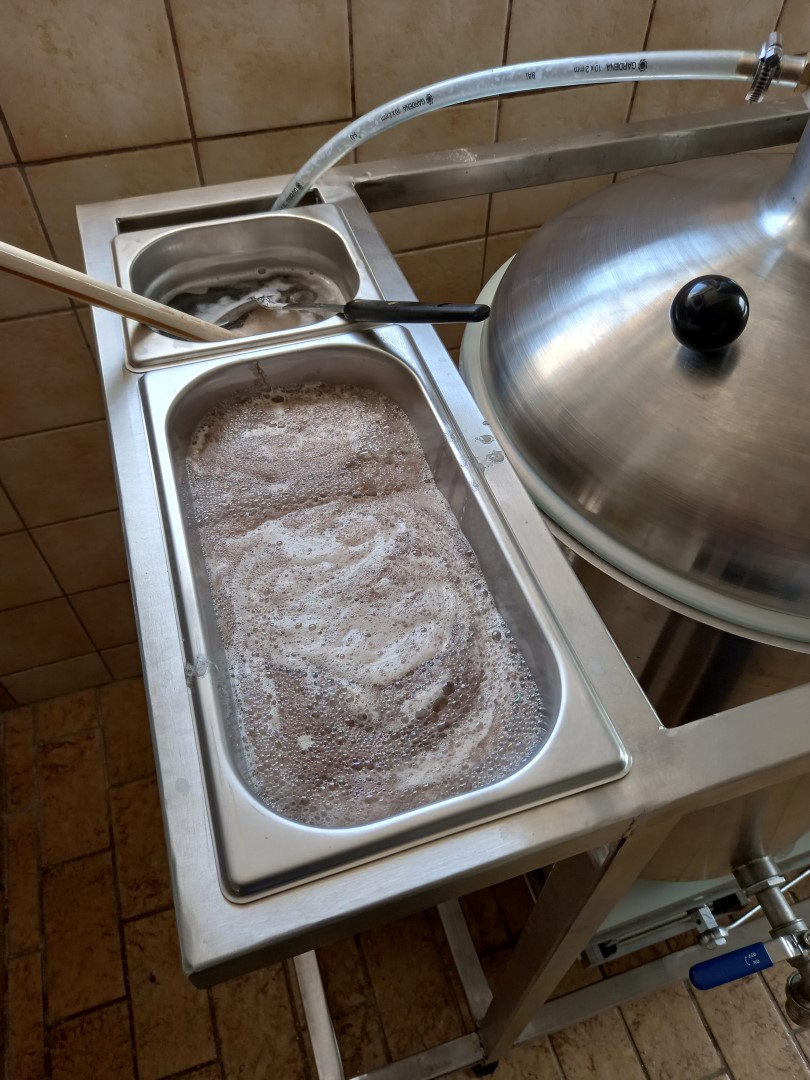 Die GN Schalen nutze ich als Lagerbehälter für Braulöffel und Schaumlöffel. Sowie zum Auffangen des Brüdenwasser und als Zwischenlagerbehälter beim Abschöpfen des Eiweiß nach Kochbeginn.