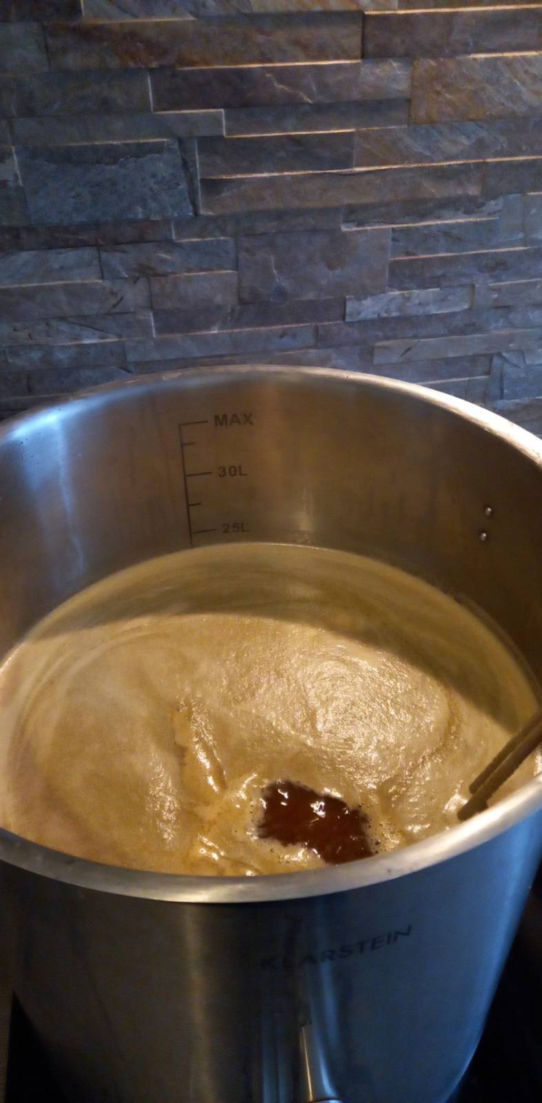 Dank Tauchsieder (möchte ich nicht mehr missen beim Brauen) kams schnell zum Eiweißbruch.