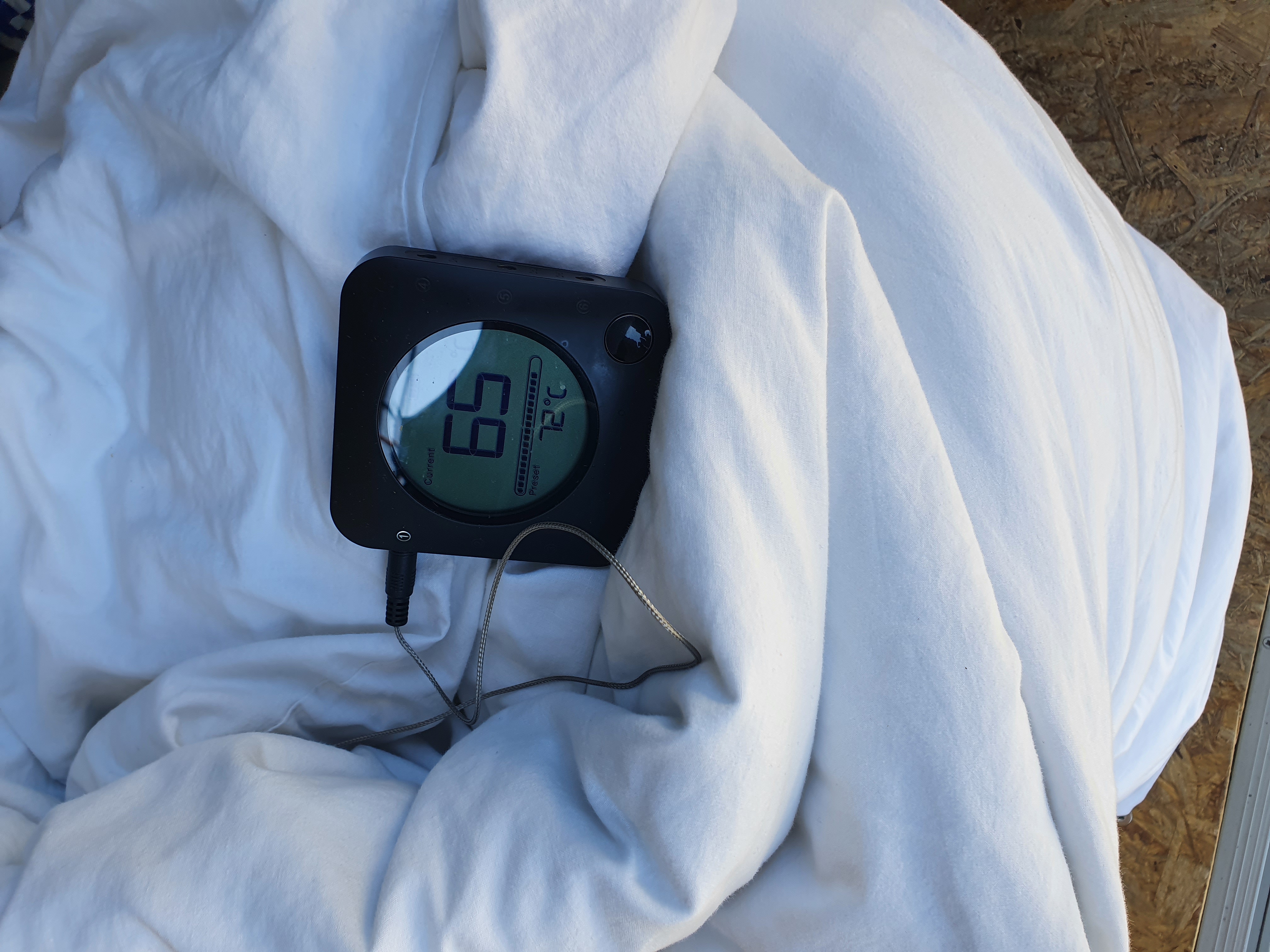 Ich dachte mal kurz an den Sous Vide Stick, den ich zu Hause habe, das wäre fast ideal-techy. Aber da wir autark unterwegs sind müsste ich erstmal schauen, wieviel Watt er effektiv zieht, um die Temperatur zu halten (vorheizen würde ich auf offenem Feuer)
