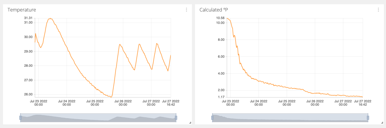 Die "calculated Plato" Kurve nutze ich nur um zu sehen wann sich die Gärung beruhigt hat. Den Schwimmdildos ist da ja nicht zu vertrauen.