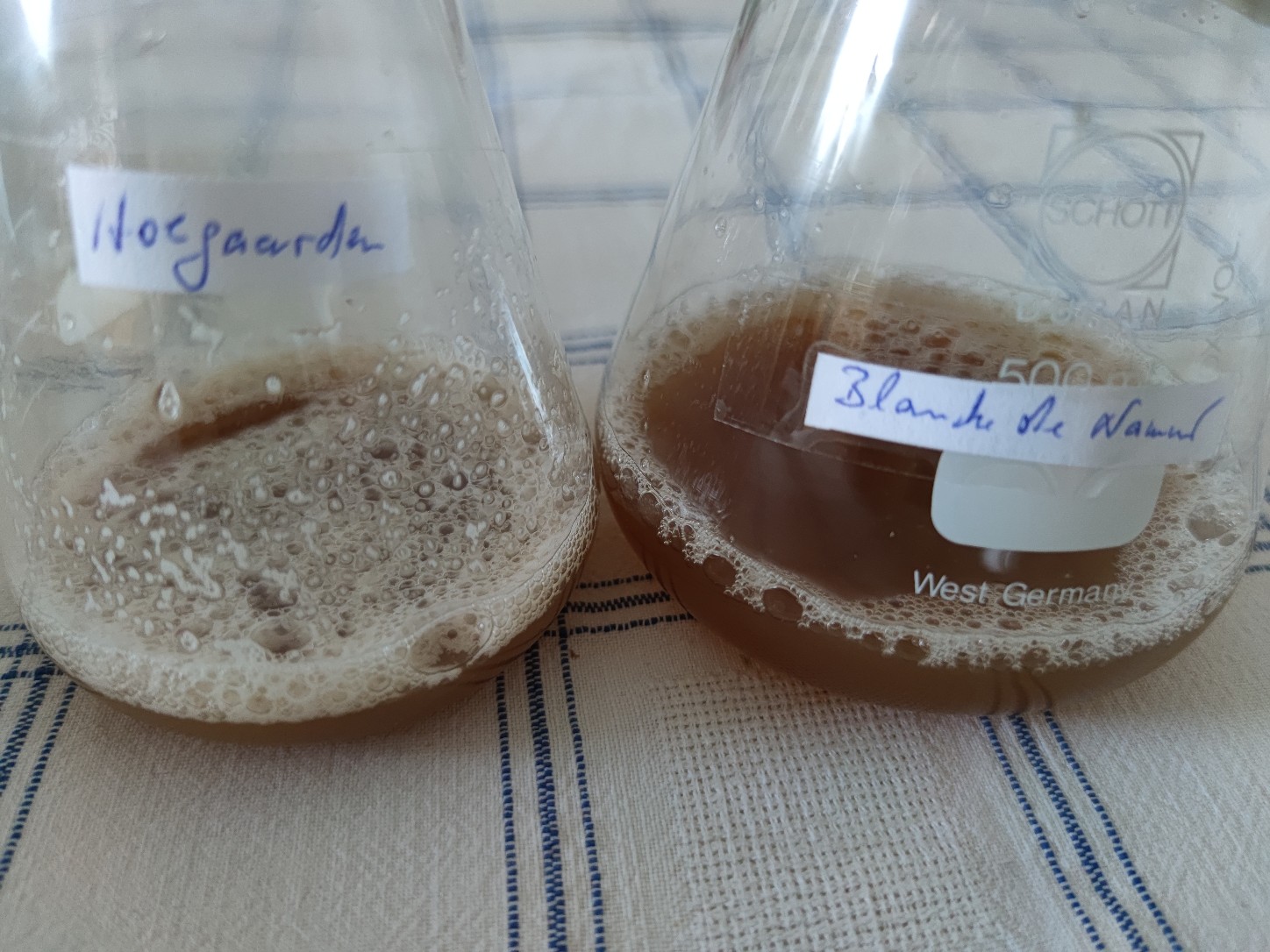 nein, die Blanche der Namur ließ sich nicht strippen. Irgendwo habe ich gelesen, dass die Hoegaarden nicht die Original -Hefe der Hauptgärung sein soll. Sie soll dennoch ein typisches Witbier produzieren :Grübel