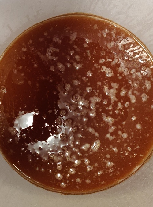 (Die Trübung kommt auf dem Photo nicht so gut raus, ist eher homogen weißlich/hefig und komplett undurchsichtig)
