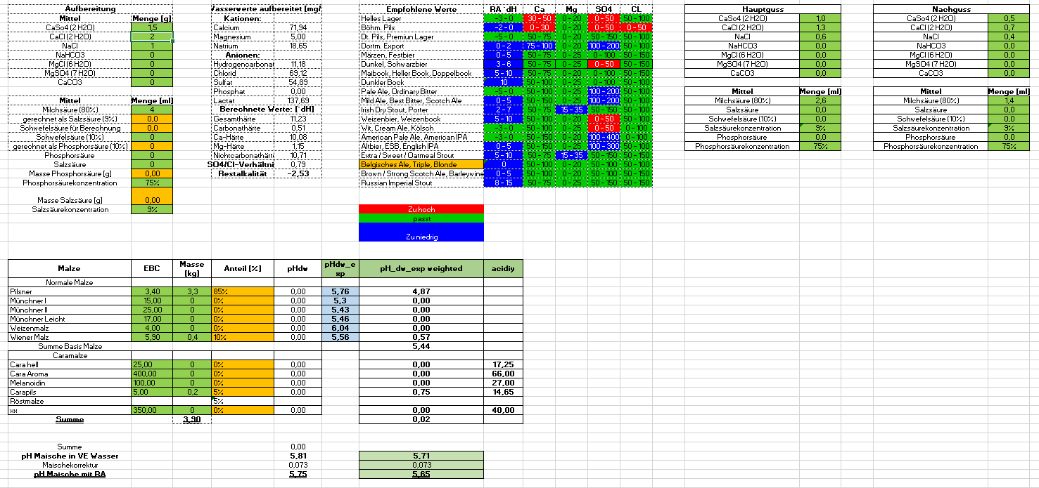 Meine geplanten/errechneten Daten aus der Grainfather App: