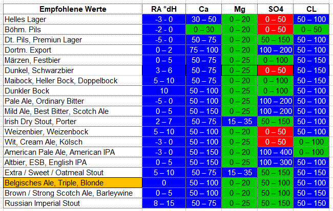 Hier folgt mein Bericht, das Brauwasser wurde wie folgt aufbereitet