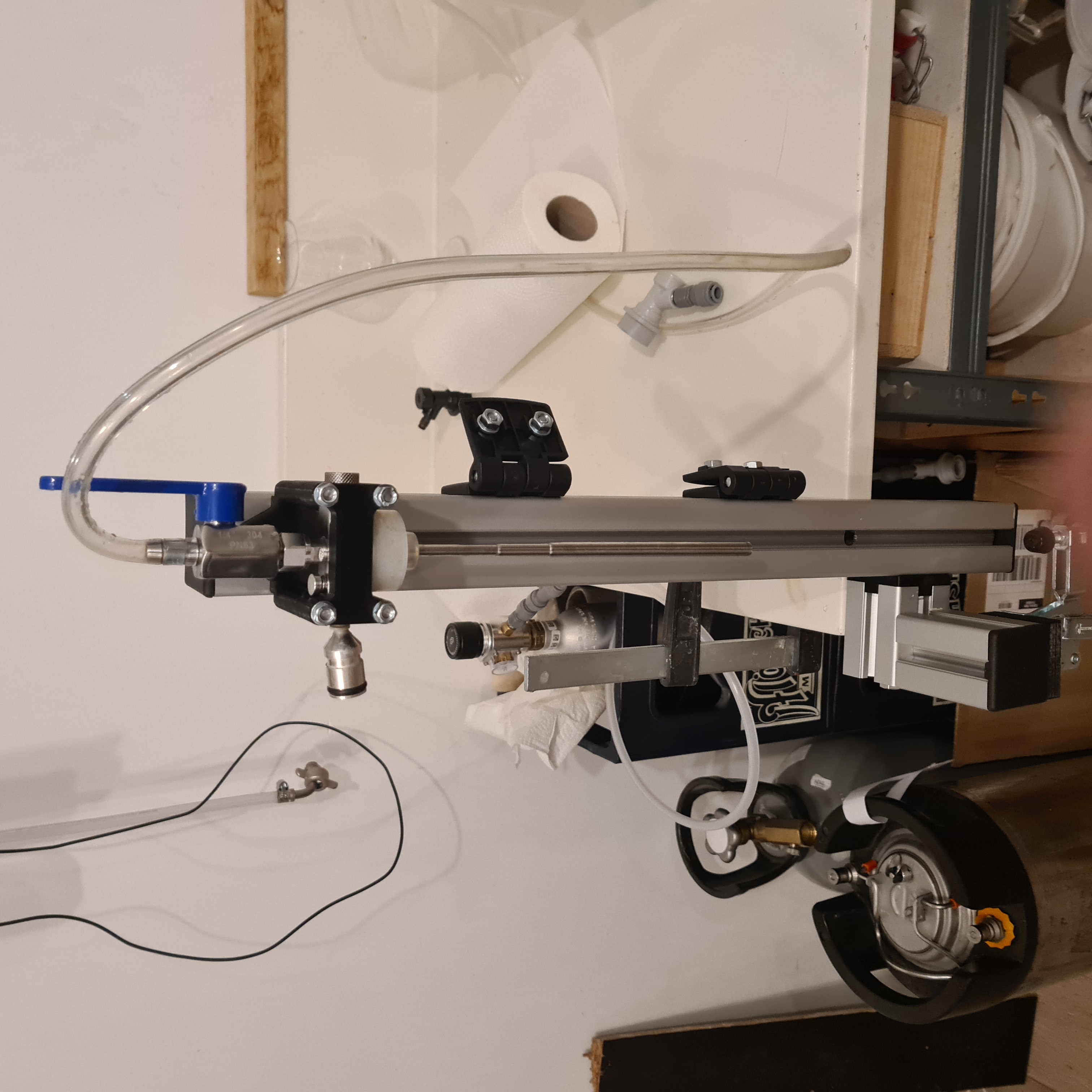 nach den vielen, tollen automatisierten Lösungen möchte ich euch hier einmal meinen selbstgebauten manuellen Gegendruckabfüller vorstellen.