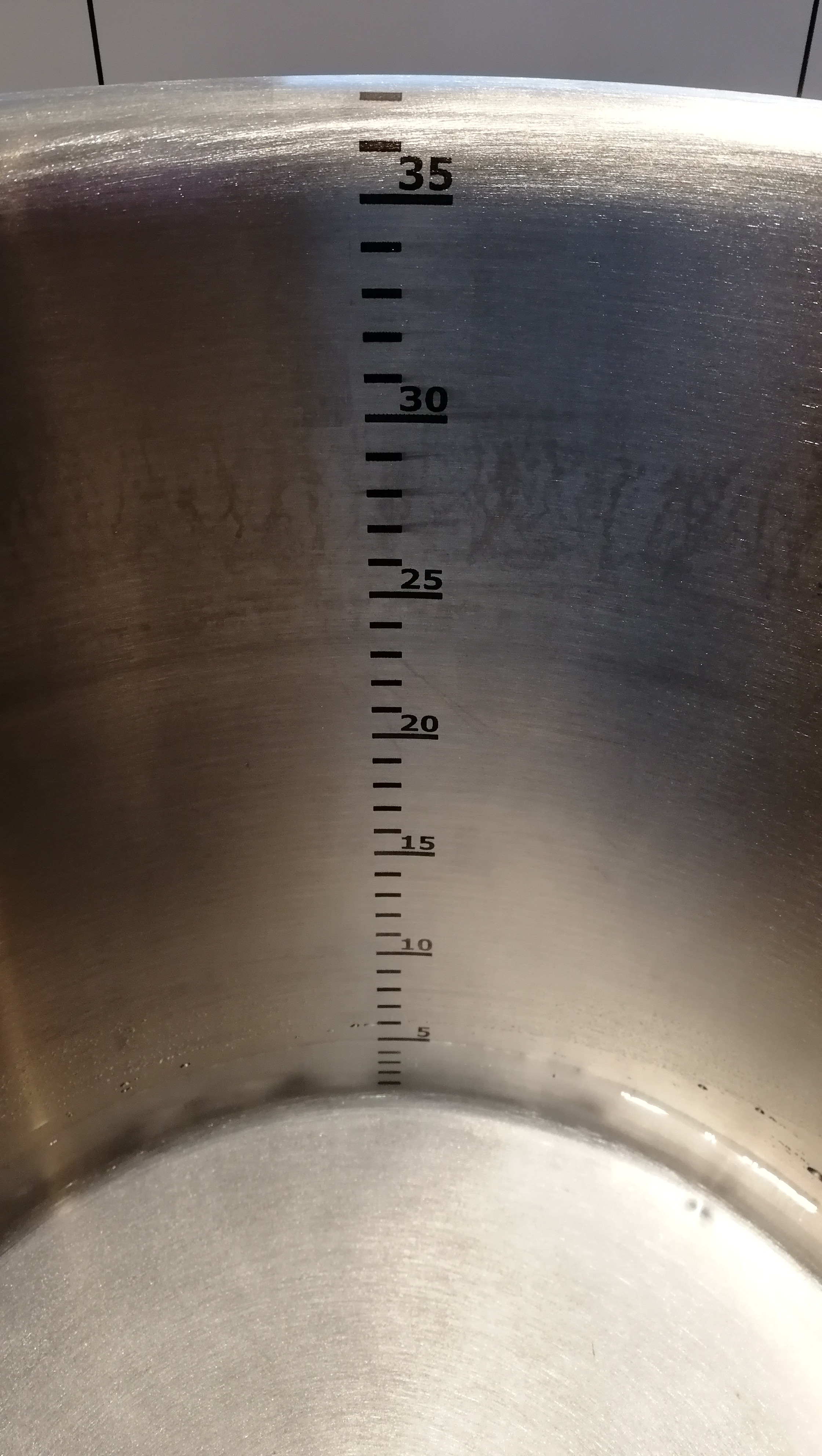 Heute habe ich mich mal dran gesetzt und meinen Braukessel mit einer Literskala signiert.