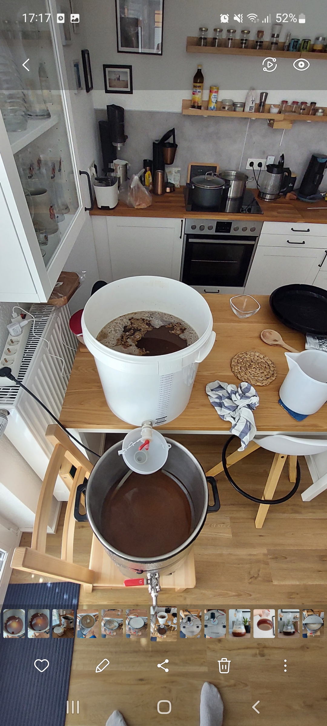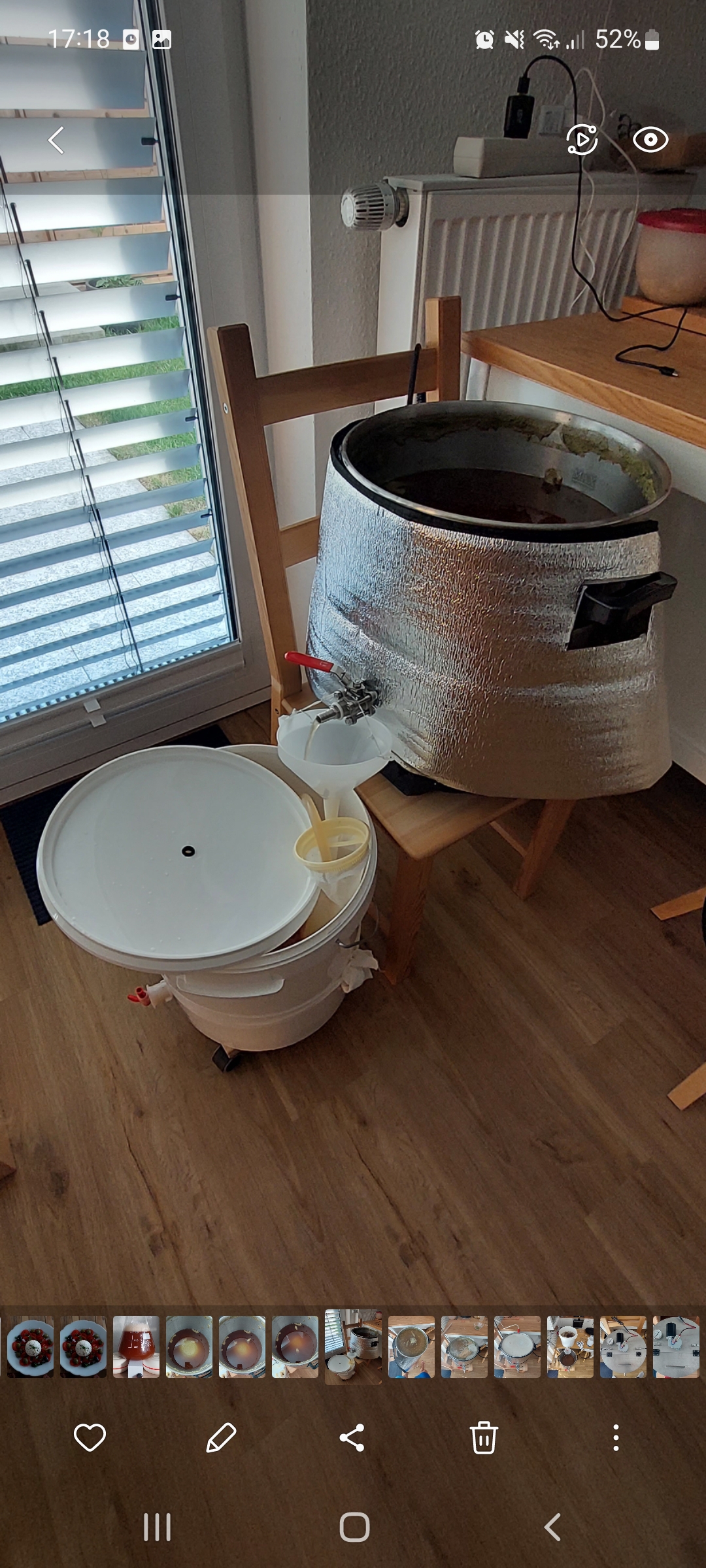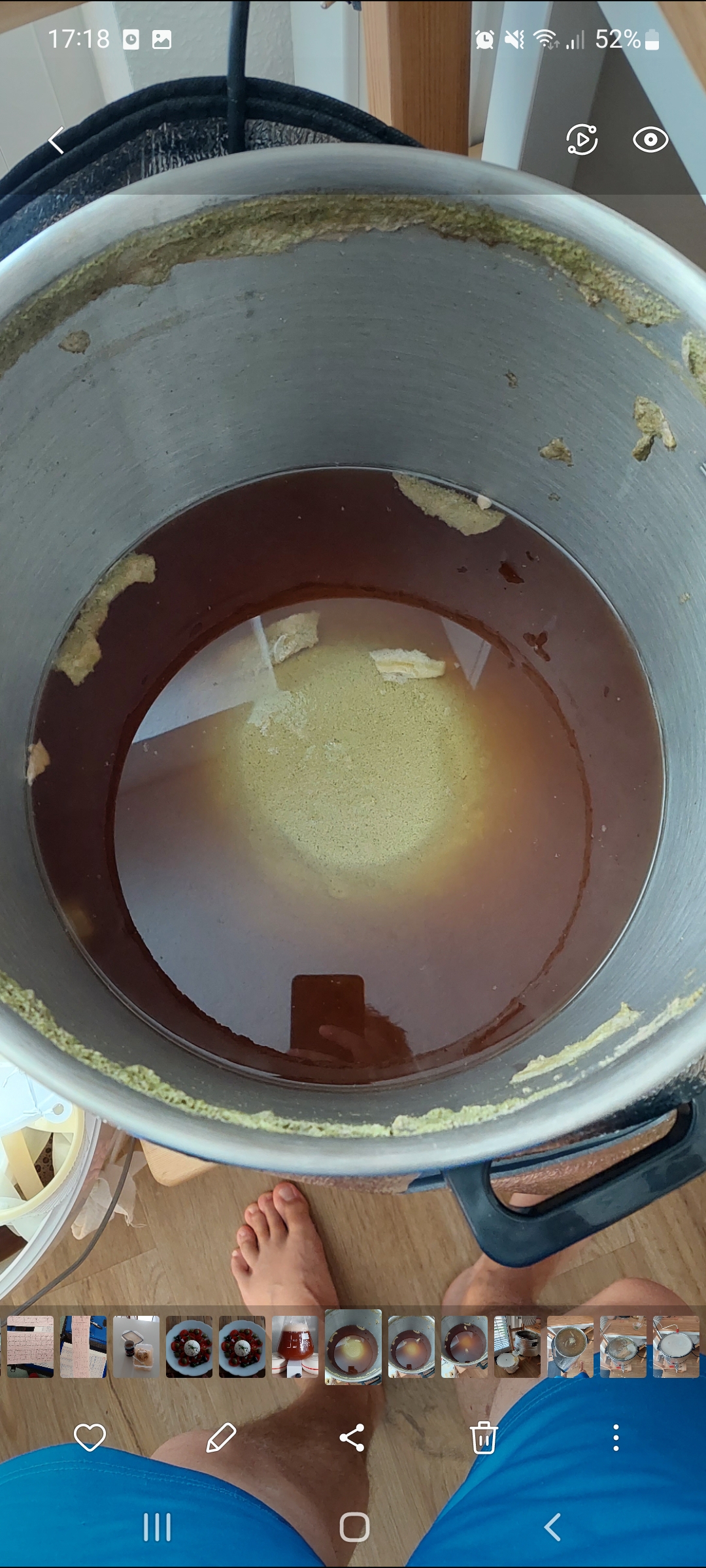Gerne nehme ich Verbesserungsvorschläge an (nicht barfüßig mit heißer Würze hantieren z.B.). Perspektivisch möchte ich mein Setup auch weiter optimieren (Würzekühler, Edelstahlgärkanne,...), aus Platzmangel da Mietwohnung wird das erst in einem hoffentlich irgendwann existierenden Eigenheim realisiert. Da möchte ich dann auch einen kleinen Brauraum realisieren