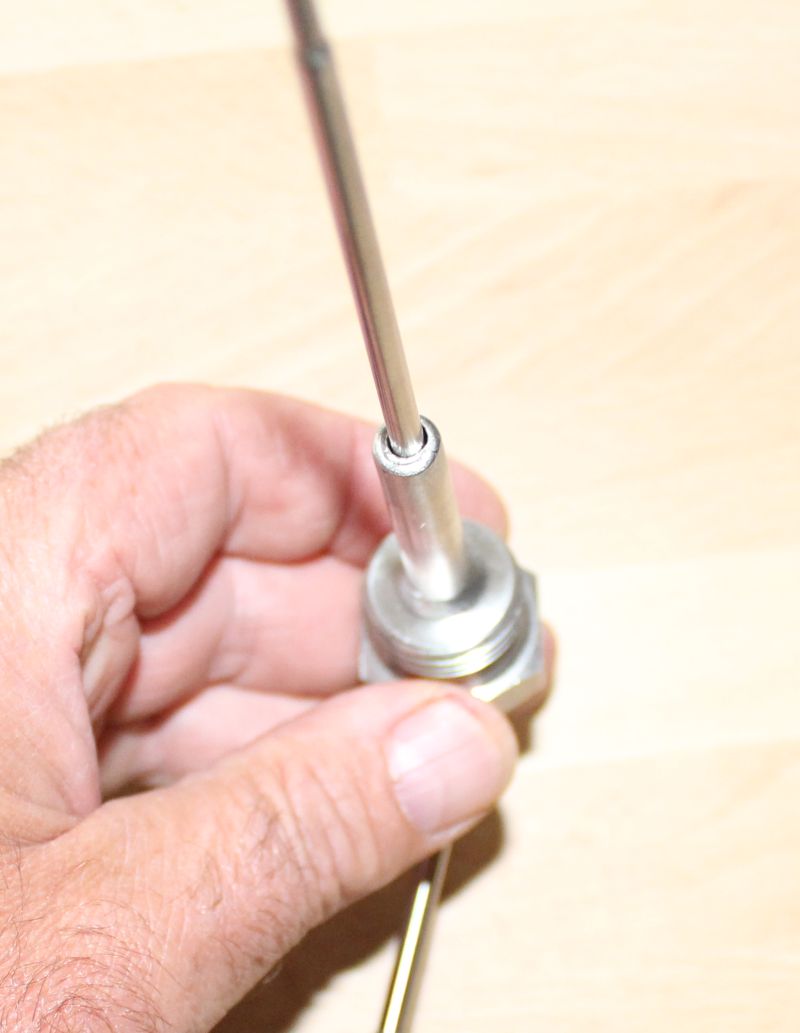 Ich habe die Hülse unten mit 4mm aufgebohrt, damit der Sensor gut durchpasst und sich ohne Probleme zum Reinigen wieder entnehmen lässt.