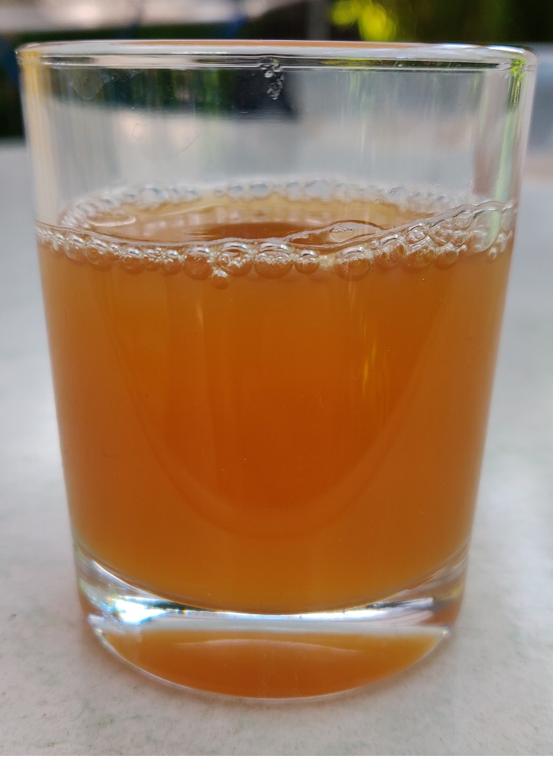 (Die Trübung kommt auf dem Photo nicht so gut raus, ist eher homogen weißlich/hefig und komplett undurchsichtig)