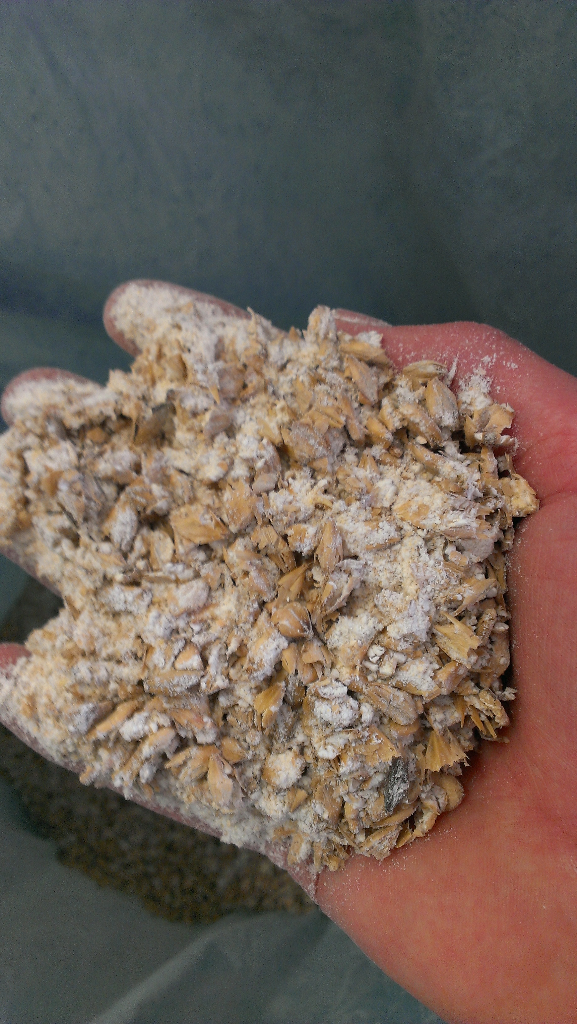 Die Körner, die in meinem Bild so aussehen, als wären es "ganze Körner" sind tatsächlich komplett erhaltene Spelzen, die entweder noch ein Bruchstück des Korns enthalten oder schlicht leer sind. Das sieht man auf einem Foto nicht, das merkt man aber, wenn man sich ein paar herausliest und zwischen den Fingern zerdrückt.