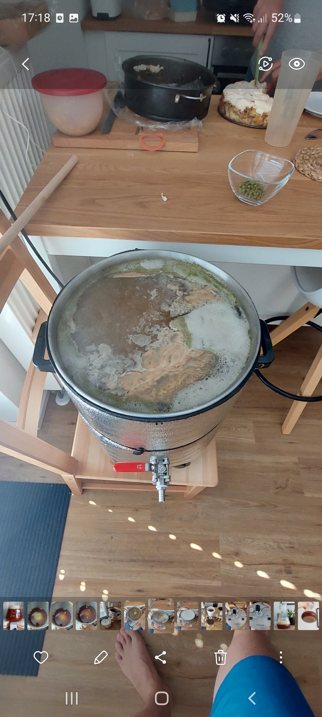 Gerne nehme ich Verbesserungsvorschläge an (nicht barfüßig mit heißer Würze hantieren z.B.). Perspektivisch möchte ich mein Setup auch weiter optimieren (Würzekühler, Edelstahlgärkanne,...), aus Platzmangel da Mietwohnung wird das erst in einem hoffentlich irgendwann existierenden Eigenheim realisiert. Da möchte ich dann auch einen kleinen Brauraum realisieren