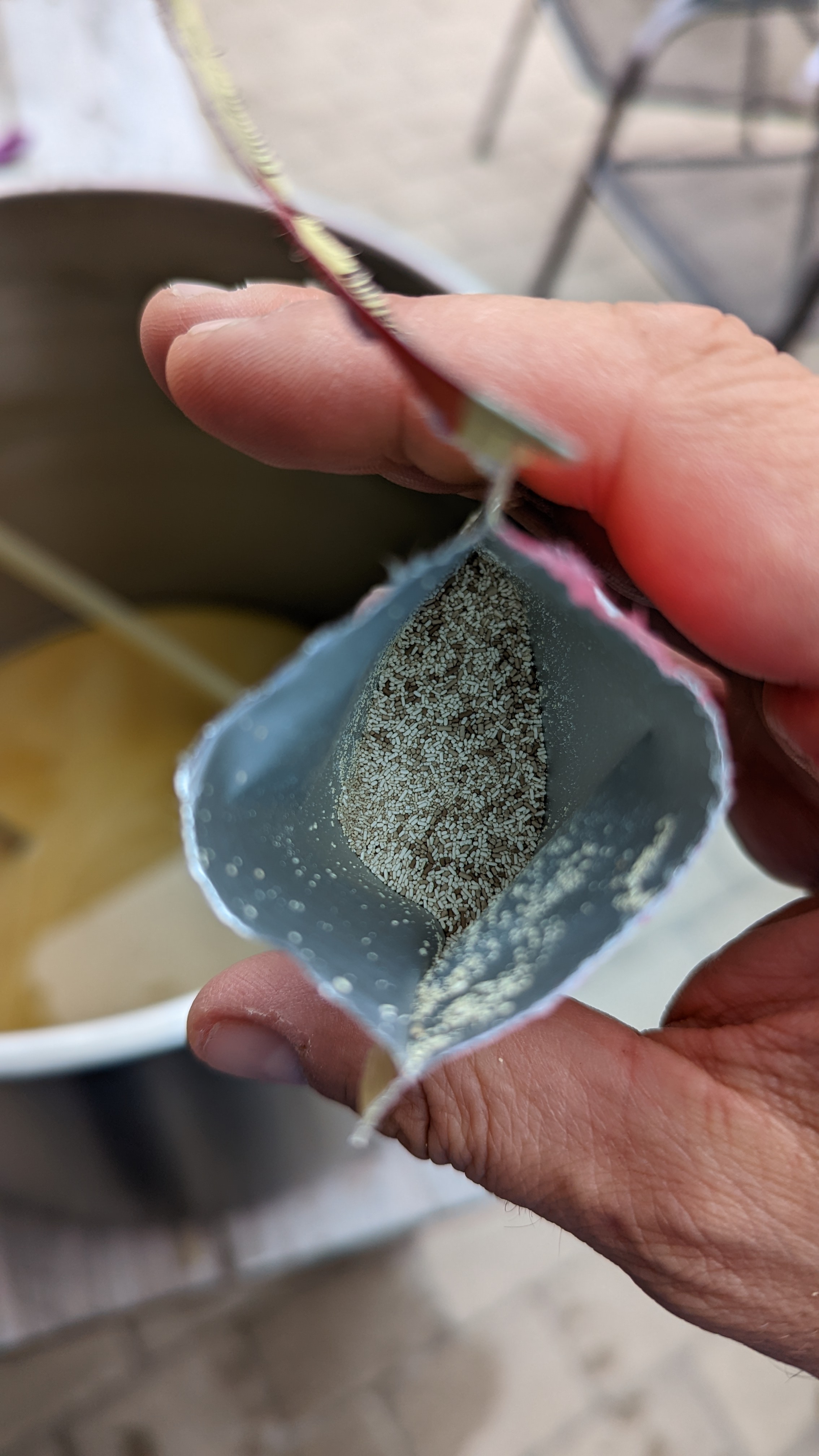 ich habe zum ersten Mal mit der M44 (US West Coast) von Mangrove Jack's angestellt. Ich kann kein Fotomaterial anbieten (ärgerlich!), aber sie sah deutlich anders aus als alle anderen Trockenhefen, die ich bislang verwendet habe. Diese wies zwei Brauntöne auf — einmal den typisch hellen (beige) und dann einen deutlich dunkleren. Jedes "Hefekorn" war aber einfarbig. Das Mischungsverhältnis schätze ich auf 1:1. Kann das jemand hier bestätigen?
