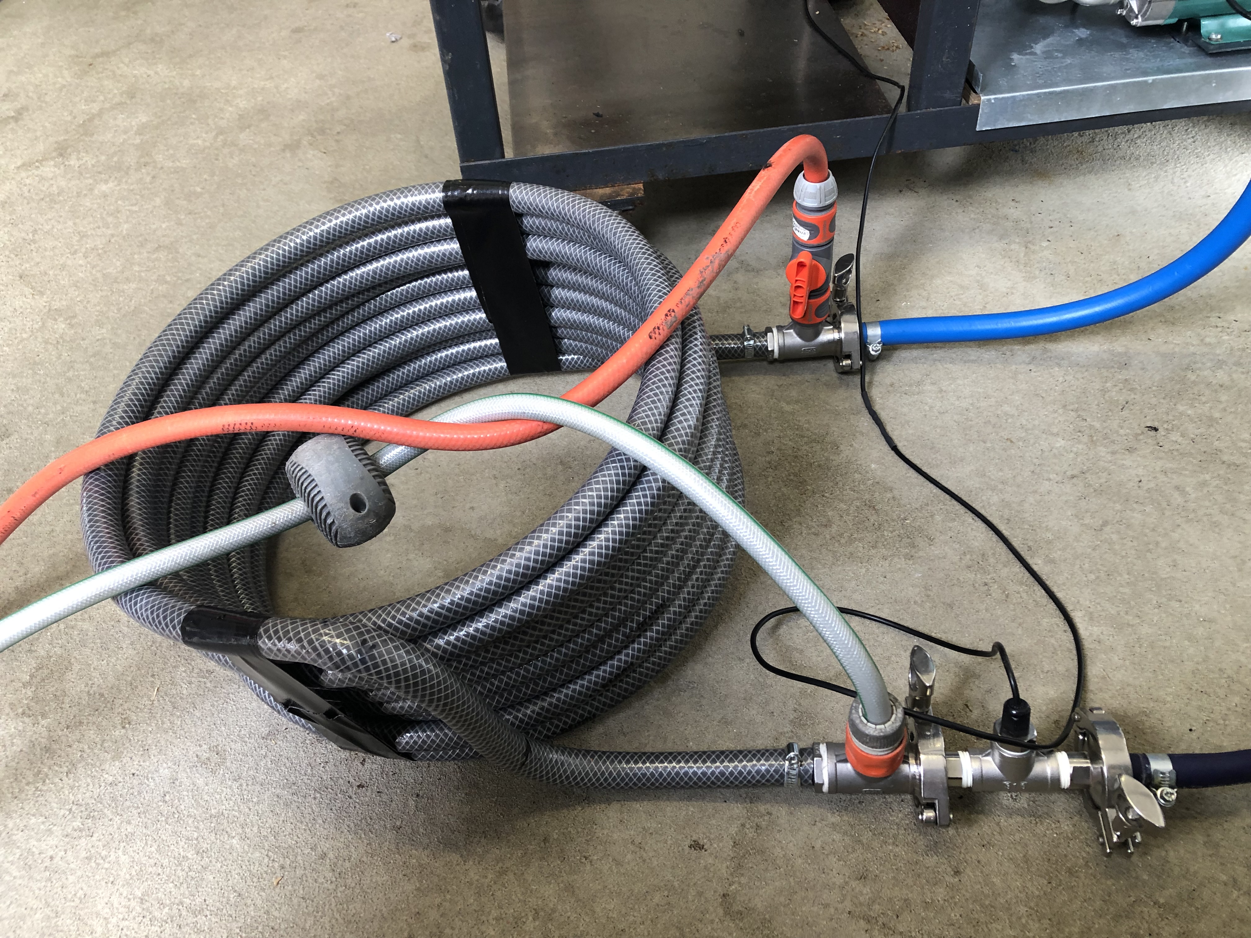 da wir nach und nach unseren Ausschlag erhöht haben und mittlerweile bei ca. 100l angekommen sind, haben wir auch nach und nach unser Equipment ausgetauscht. Bisher haben wir mit dem bekannten Standard-Gegenstromkühler vom Zapfanlagendoktor gekühlt, was aber aufgrund des ID von nur 6mm (AD=8mm) trotz Pumpe bei knapp 100l heißer Würze unabhängig der Kühlwassertemperatur über eine Stunde gedauert hat, was uns einfach deutlich zu lange war.