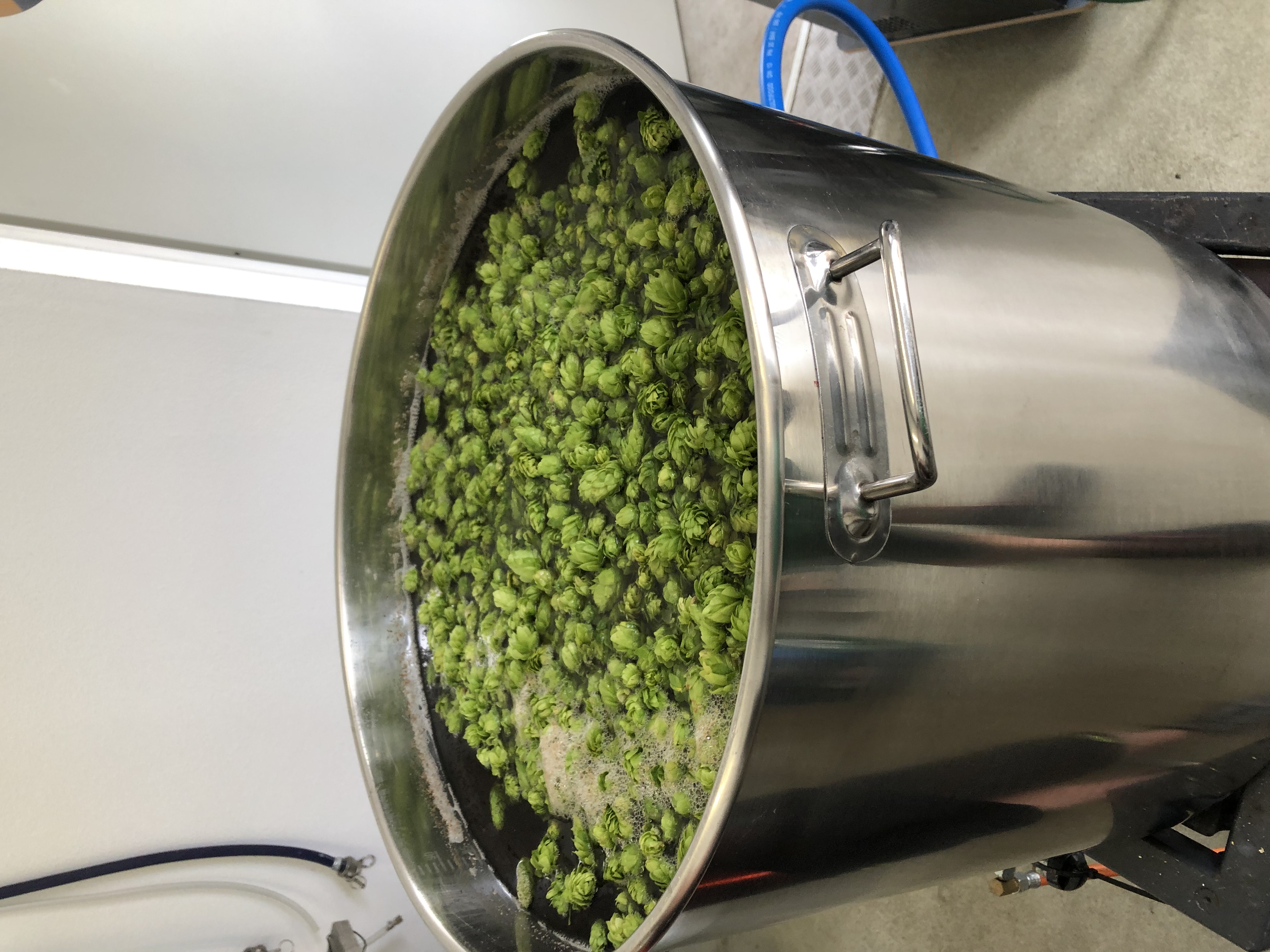 Am Samstag war dann der erste echte Einsatz, gebraut wurde ein Helles mit frischem Grünhopfen.