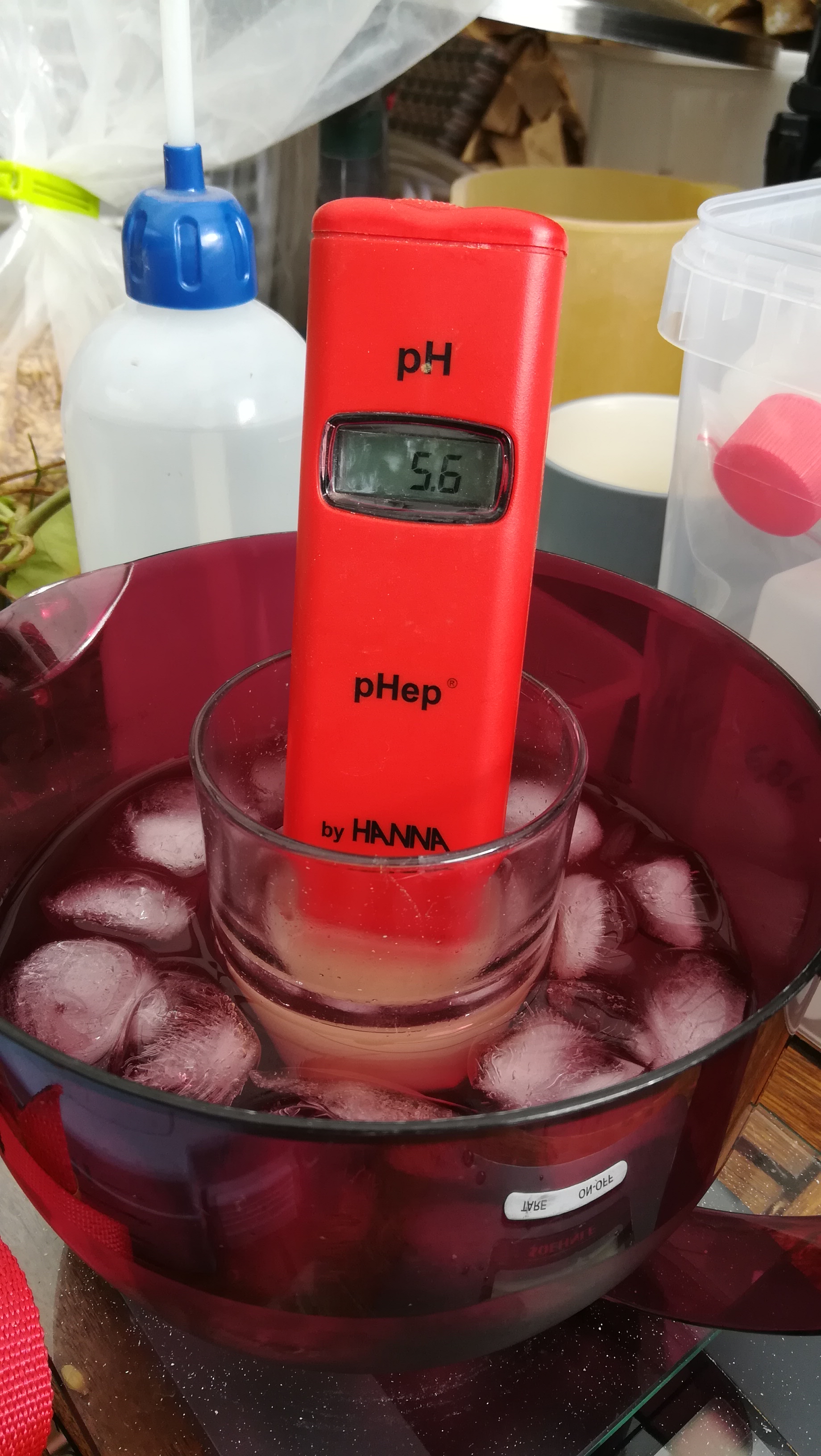 Zehn Minuten nach dem Einmaischen habe ich eine Probe für die PH-Wert-Messung genommen, das passte schon ganz gut. Hier besteht aber noch Optimierungspotenzial.