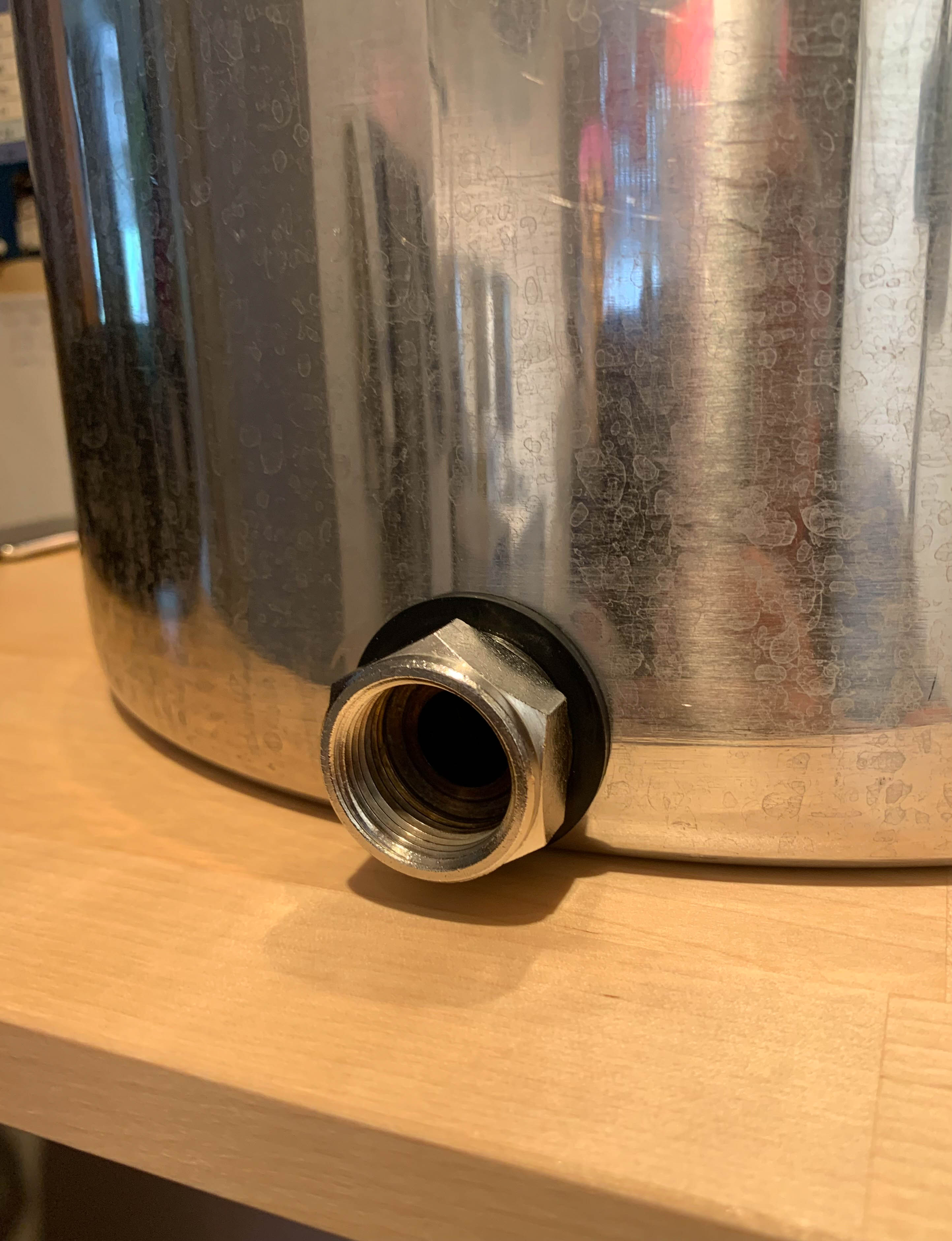 Die Hähne werden an Edelstahlkochtöpfe geschraubt, die ich zum Gären und Läutern verwende.