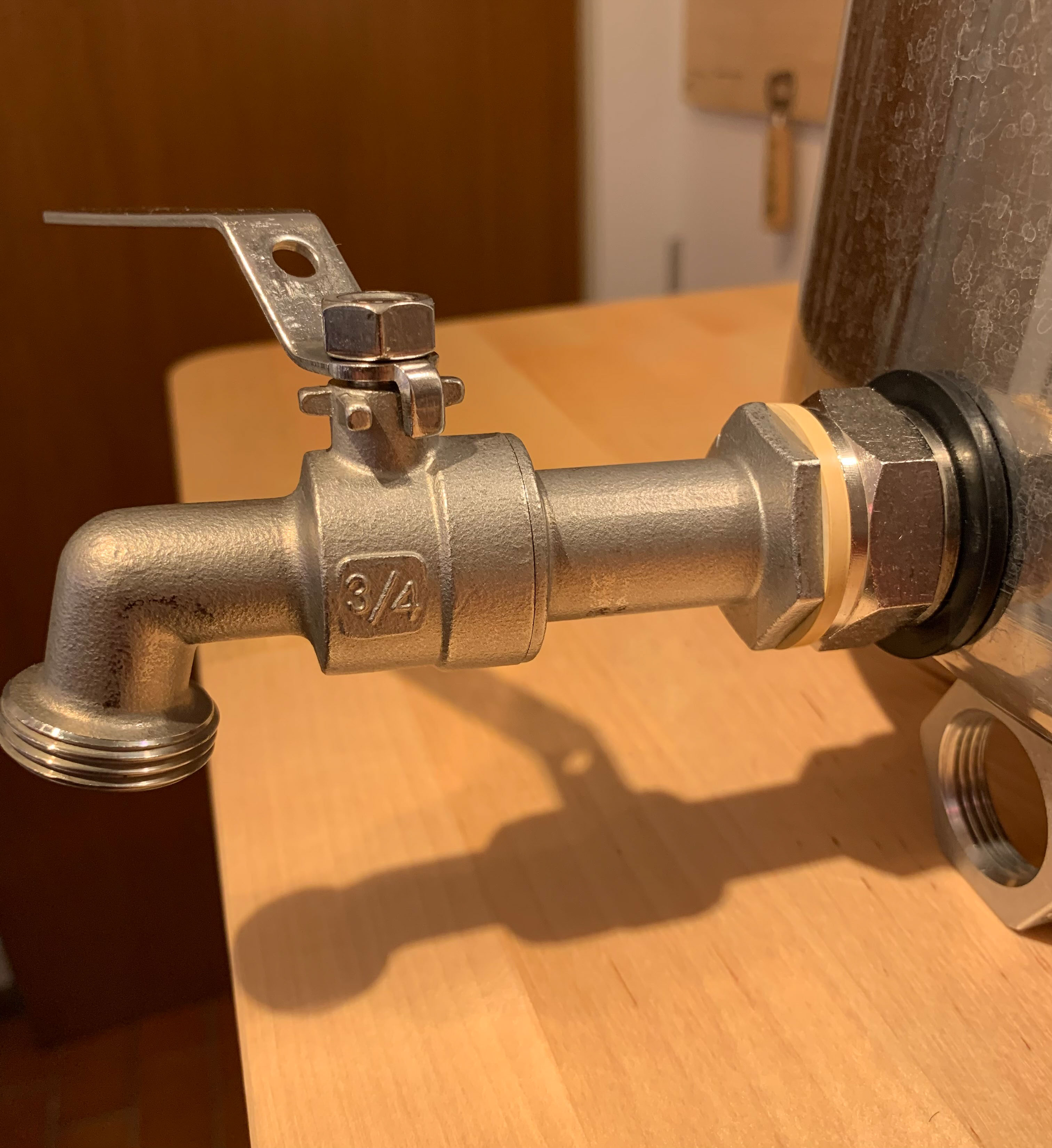 den 3/4 Zoll Edelstahlhahn im Einsatz.