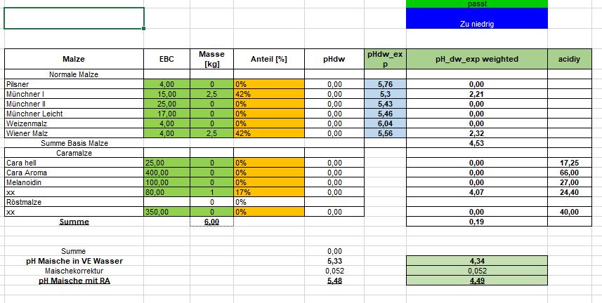 Das ist mir klar und das habe ich auch getan. (komplette Malzangaben eingetragen)rakader hat geschrieben: Montag 24. Oktober 2022, 19:59 Ich kenne den Rechner nicht auswendig (lange her) - Du musst aber Dein Rezept mit allen Malzgaben eintragen, erst dann bekommst Du eine reliable Berechnung und Aussage.