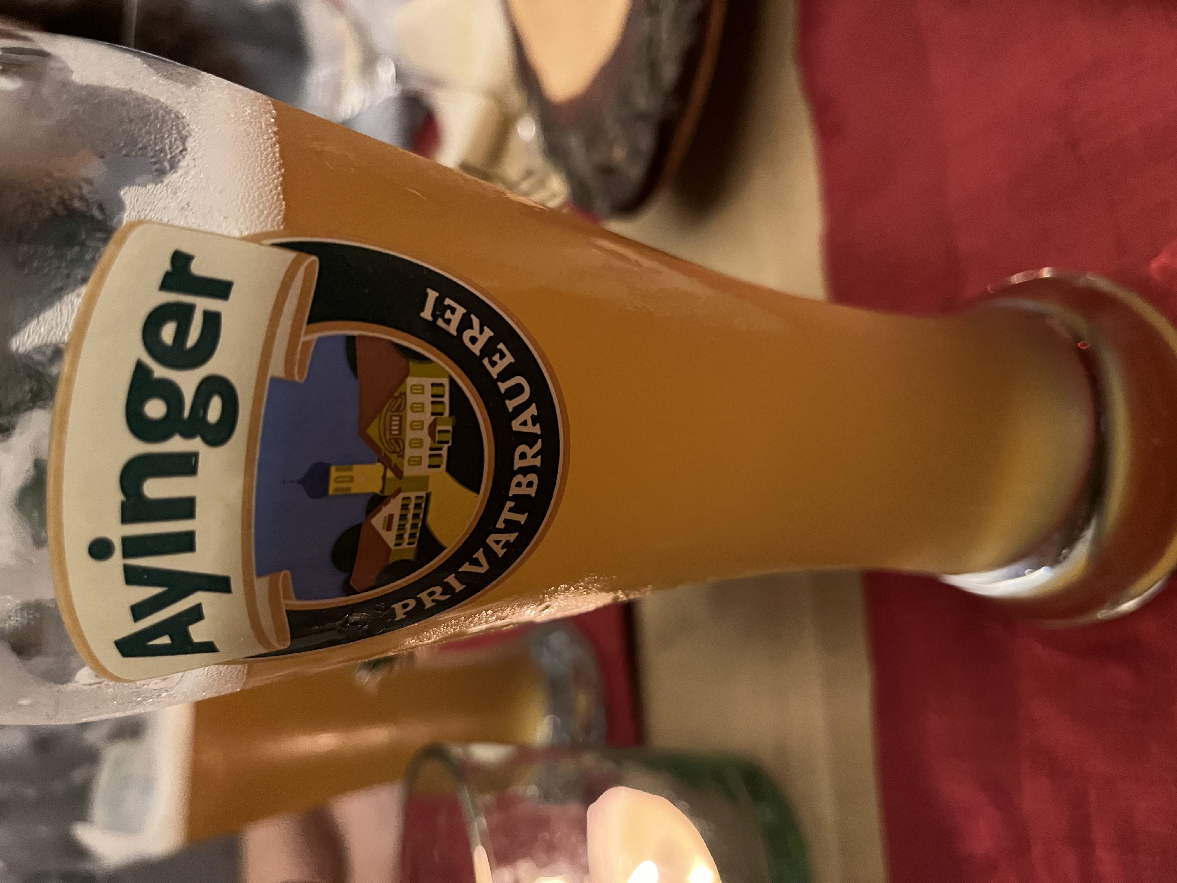 Ein Ayinger Weißbier auf der Weihnachtsfeier
