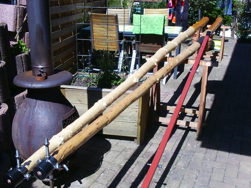 Dieses Wochenende habe ich nun endlich meine Hopfenstangen aufgestellt, das war eine sehr wackelige Angelegenheit da oben auf der Leiter.