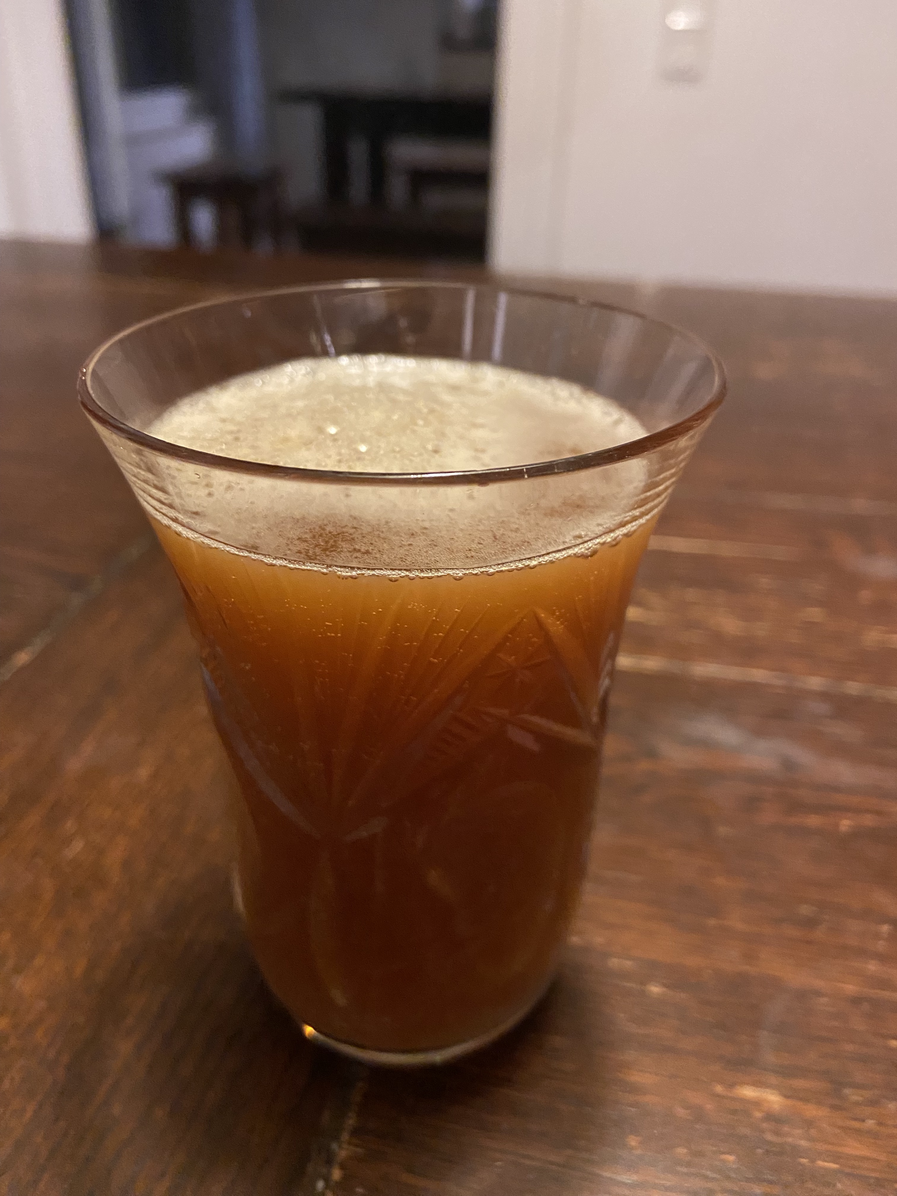 Ich probiere mein norwegisches Weihnachts-Ale, 9 Tage nach Brautag. Stammwürze etwa 20 Grad Plato, Raw Ale mit wenig Hopfentee und viel Wacholder, vergoren mit Hornindal Kveik.