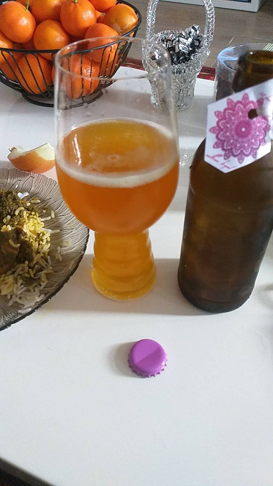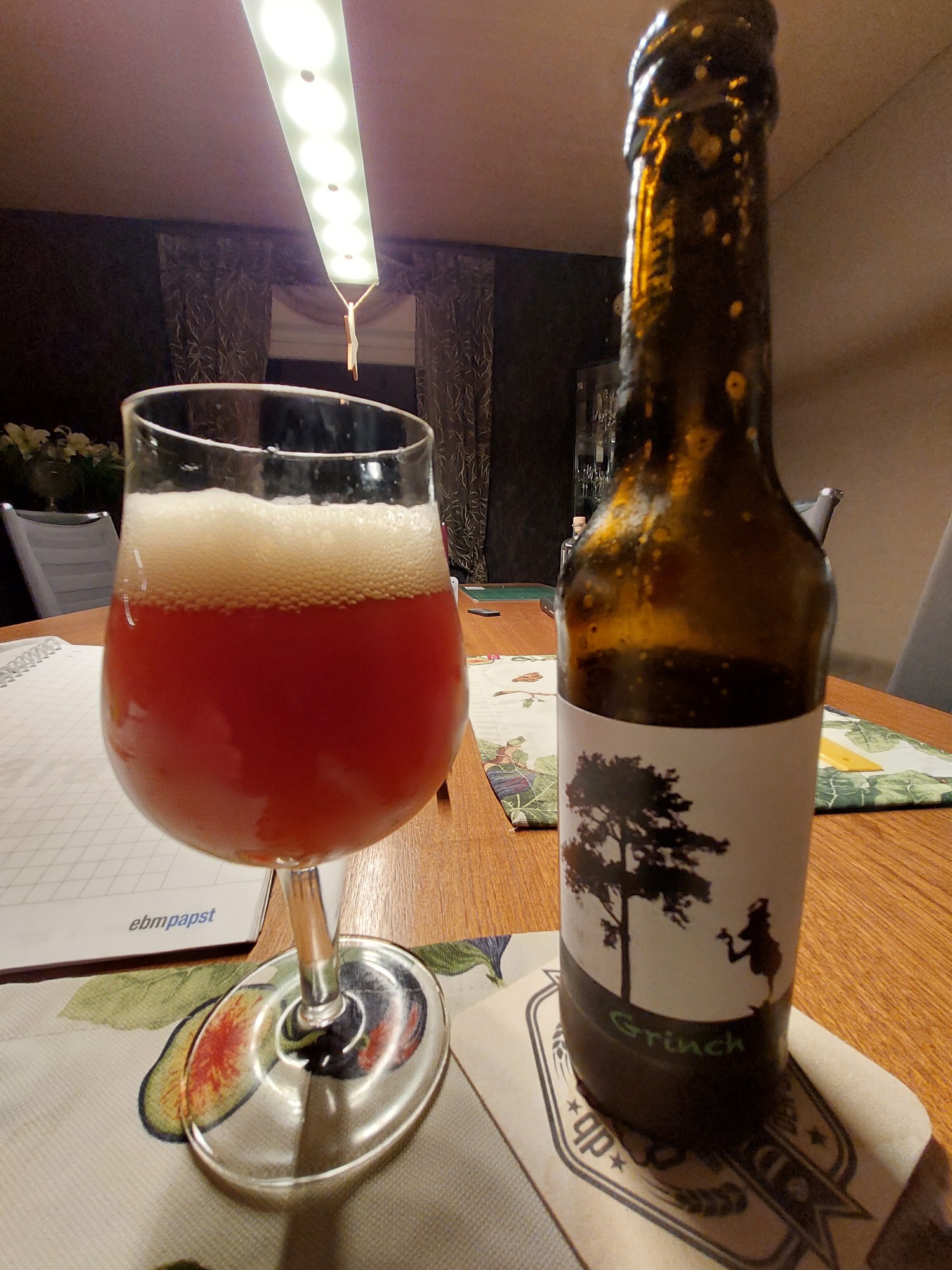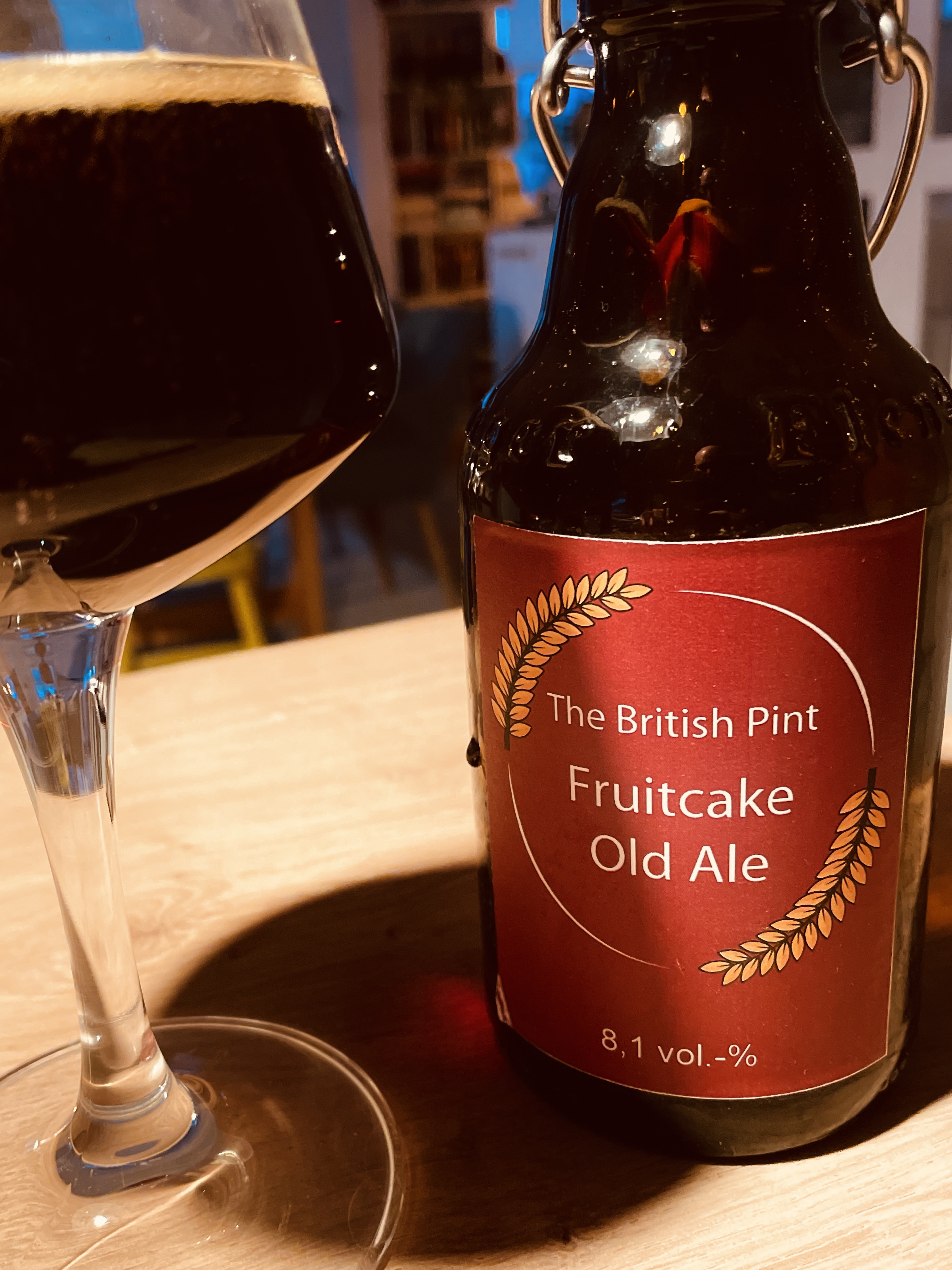 So, jetzt das Fruitcake Old Ale ohne Brett. Nur ein wänziges Schlöckchen. Den Rest gibt es später. Schönes dunkles Kupfer, kaum Schaum, dezente Rezenz. Relativ schlank, wenig Restsüße. Die Gewürze kommen gut durch, es ist etwas „spicy“ gepaart mit einer sanften Bittere. Passt gut zusammen. Eine gewisse Fruchtigkeit ist zu schmecken, ich könnte das im Moment aber nicht differenzieren. Ein schönes Winterbier. Der Eindruck von „Fruitcake flüssig“ ist definitiv da.