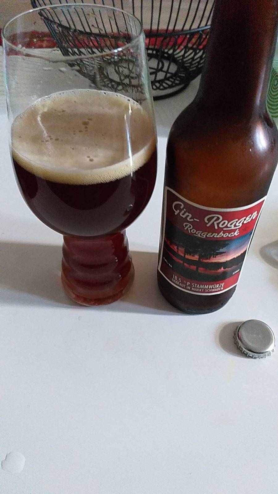 Geschmacklich merke ich erstaunlicherweise fast gar nix vom Viertelkilo Wacholder, das hier verbraut wurde. Malzig, aber nicht mastig, minimale Adstringenz am Gaumen, eine leichte Restsüße harmonisiert gut mit der dezenten Säure des Roggens. Die Bitterkeit ist ebenso passend, runde Sache.