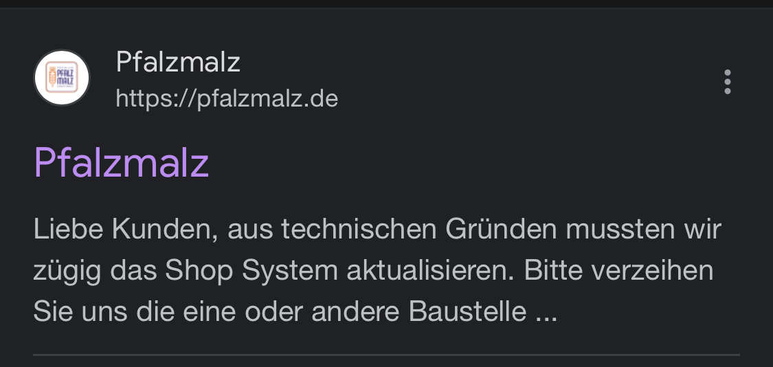 Wir haben Weihnachten und Jahresende. Das ist die übliche Zeit, in dem die Shops auch mal ein paar Tage freinehmen, Inventur machen oder was auch immer. Pfalzmalz hat letztens erst beim Adventskalender der FB-Gruppe mitgemacht und Gutscheine verlost. Das macht man garantiert nicht, wenn man die Bude grade zu macht. Also hab bitte einfach mal etwas Geduld.