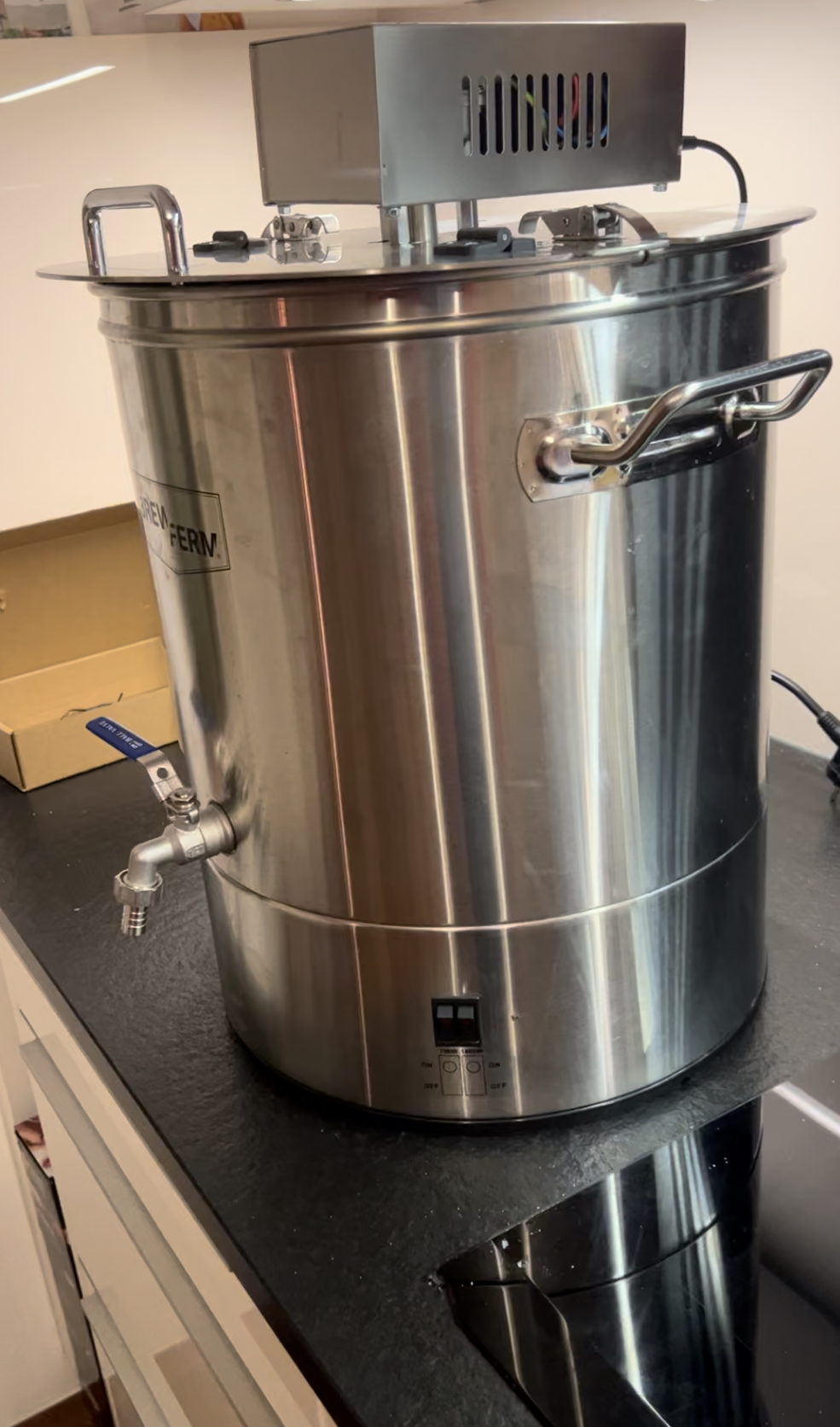 30L-Klasse; 50l Topf, 3.5k Induktion, Thermoport mit Läuterhexe, 2x Edelstahl Gärfaß, 2x Kühlschrank mit Inkbird, NC-Kegs und GDA für Flaschen.