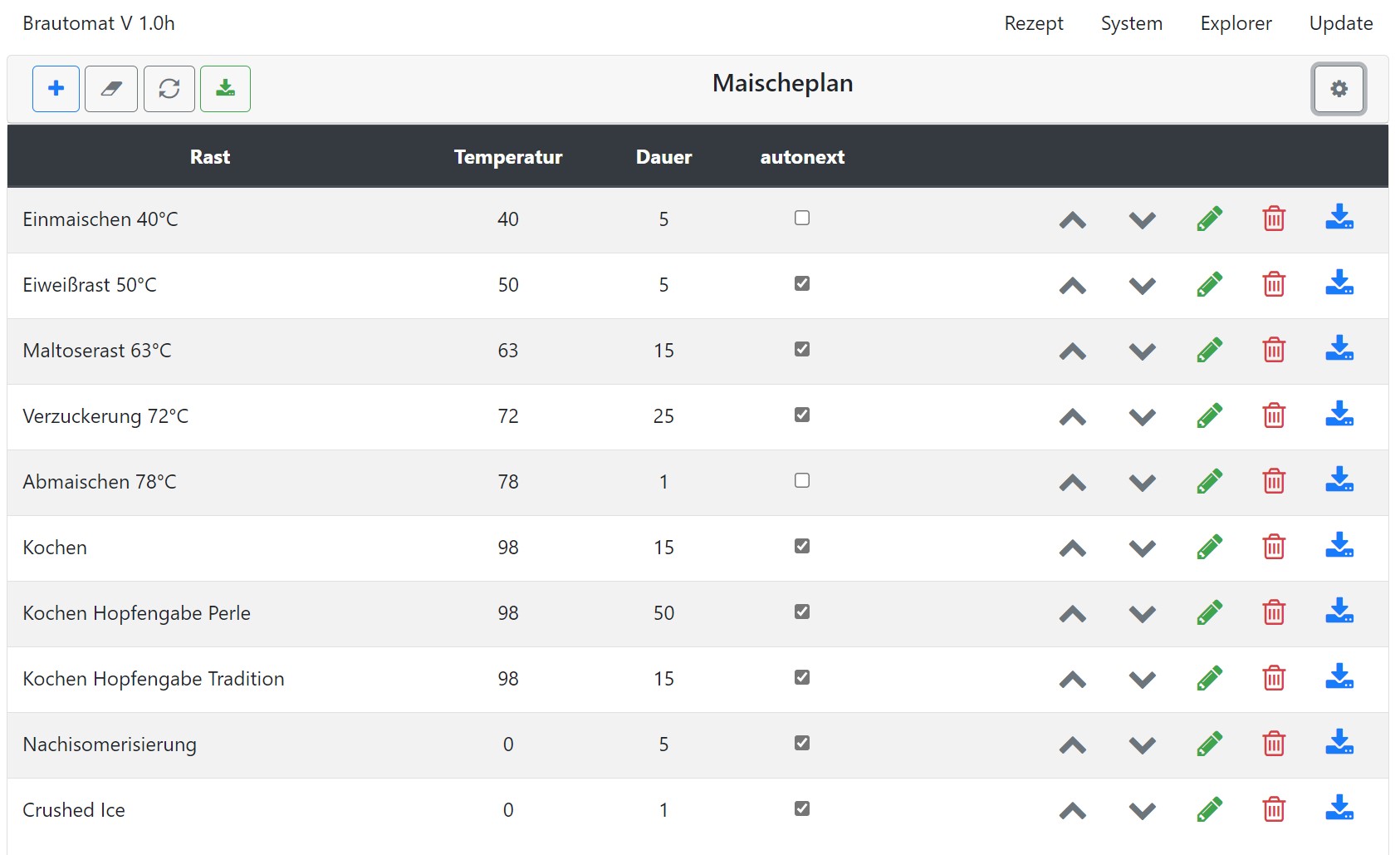 Neu ist ein Backward Button. Analog zum Forward Button ist die Funktion einen Schritt zurück im Maischeplan. Wenn der Maischeprozess pausiert ist, wird der Rast-Timer der aktuellen Rast zurückgesetzt. Die Anleitung/Beschreibung wurde überarbeitet.