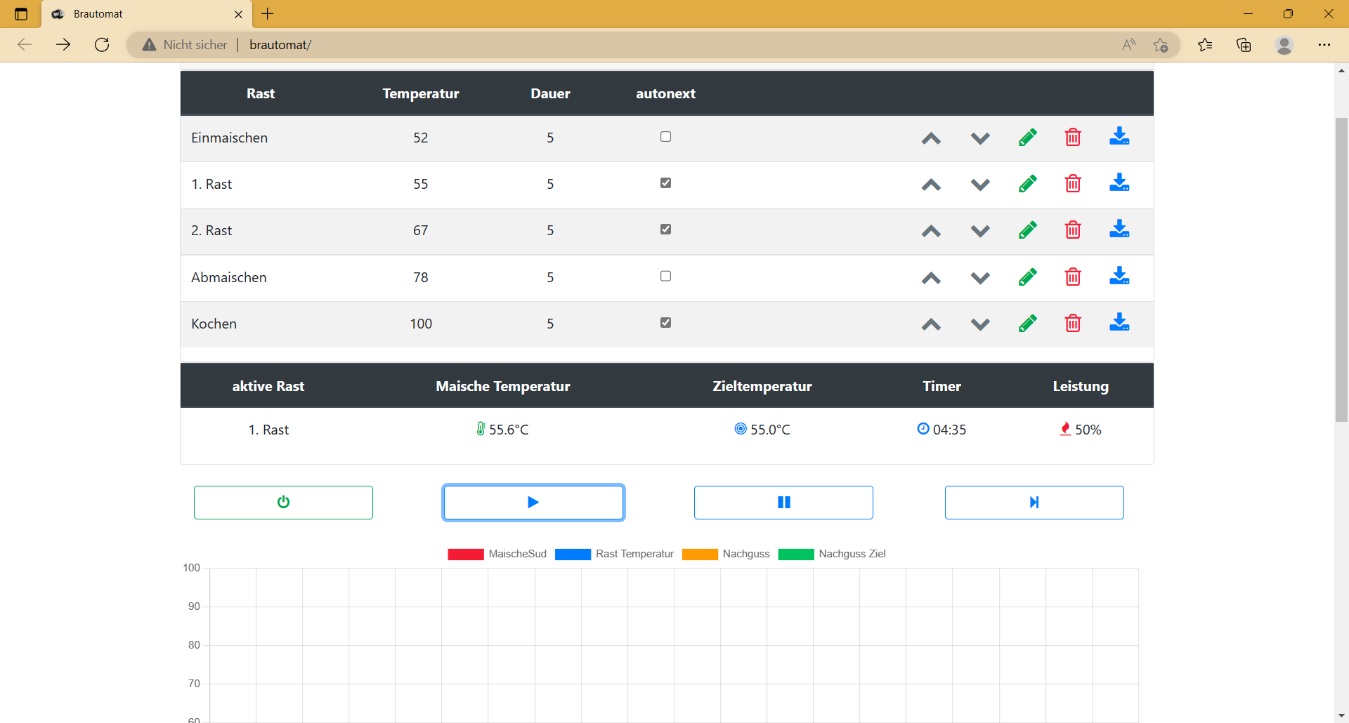Das Rezept wird aus MMum importiert und auf die eigene Anlage angepasst. Mein Maischeplan schaut dann so aus:
