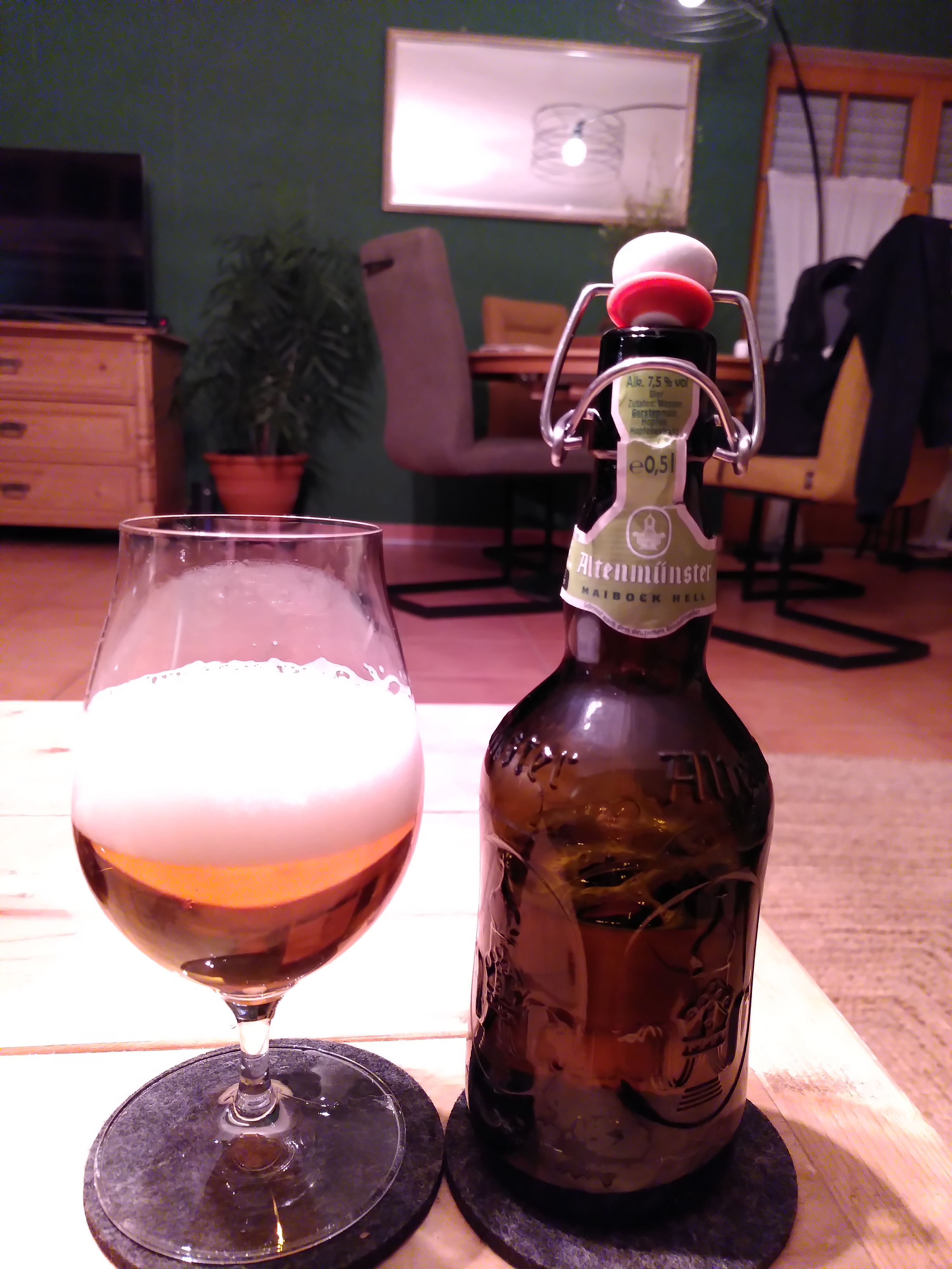 Ich hatte gestern den Altenmünster Maibock im Glas. Mein erster für dieses Jahr und fand den als Einstieg ganz gut. Würde sagen, wenn man die Stilbeschreibung so nimmt, ist er in allen Parametern ziemlich in der Mitte, quasi sehr ausgewogen. Allerdings beim Alkohol mit 7,5% auch schon gefährlich süffig.