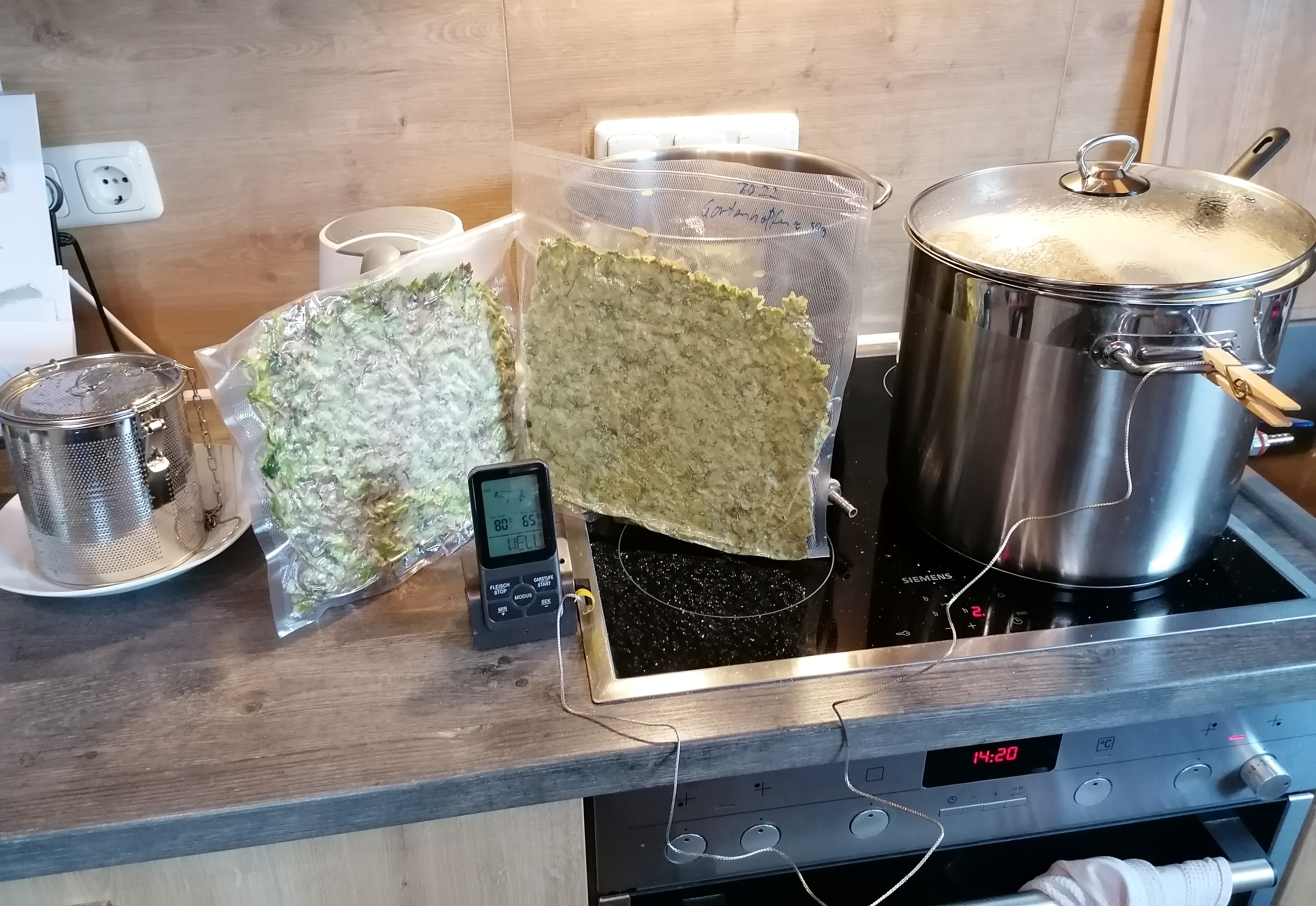 Das Kühlen mit Eiswasser ging von 20 Grad auf 10 Grad in etwa 20 Minuten. Angestellt mit der Zymoferm Z0008 bei 10 Grad. Nun bin ich mal gespannt, ob und wann die ankommt.