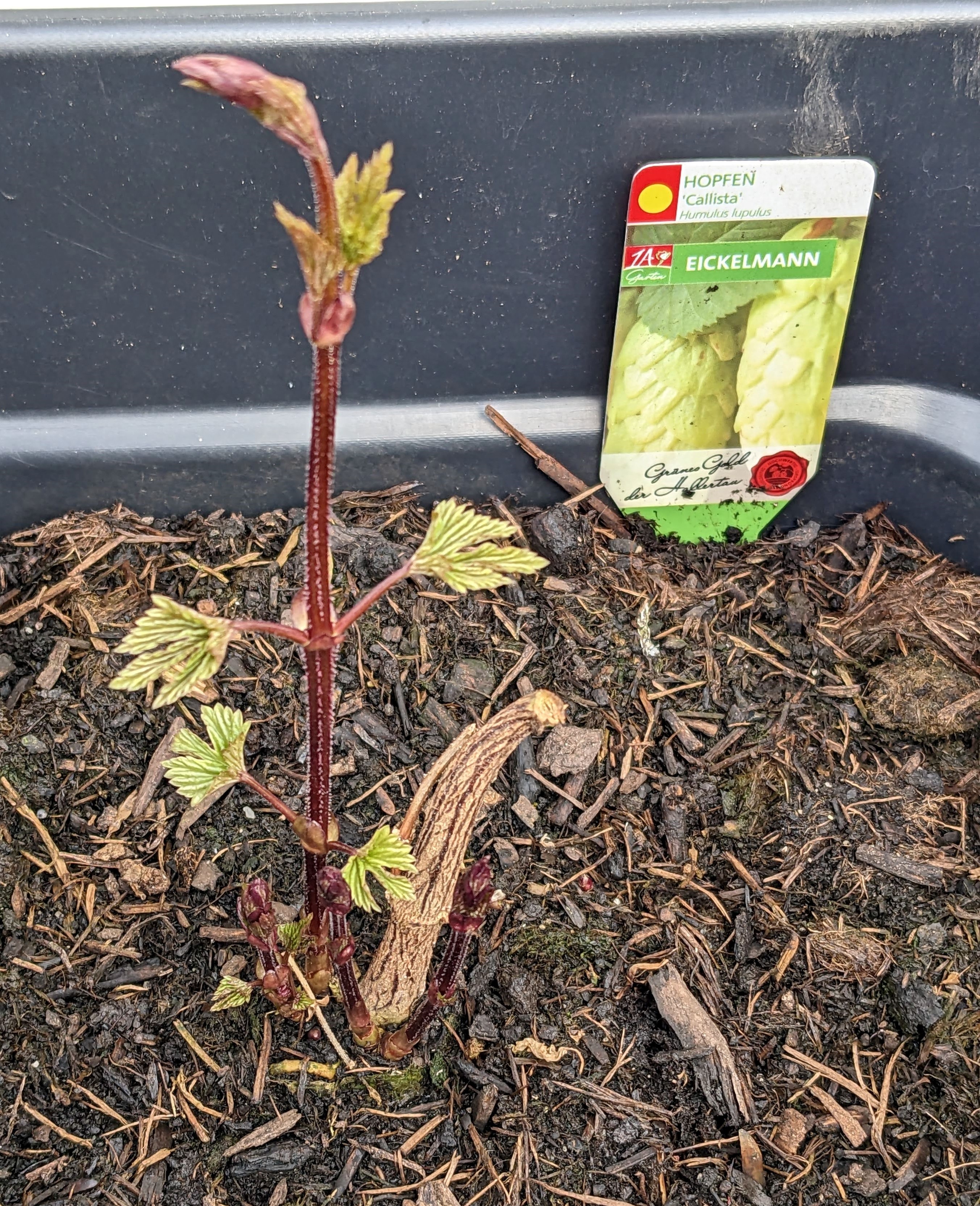Ich steige dieses Jahr auch als Newcomer unter den HobbyHopfenBauern ein: Meine Kinder haben mir zwei Saaz Setzlinge geschenkt.